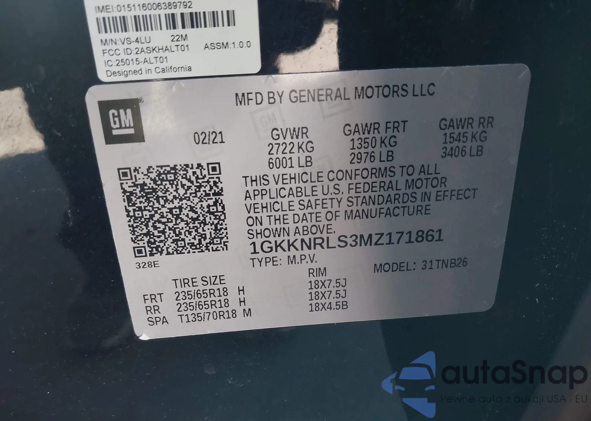 • VIN 1GKKNRLS3MZ171861