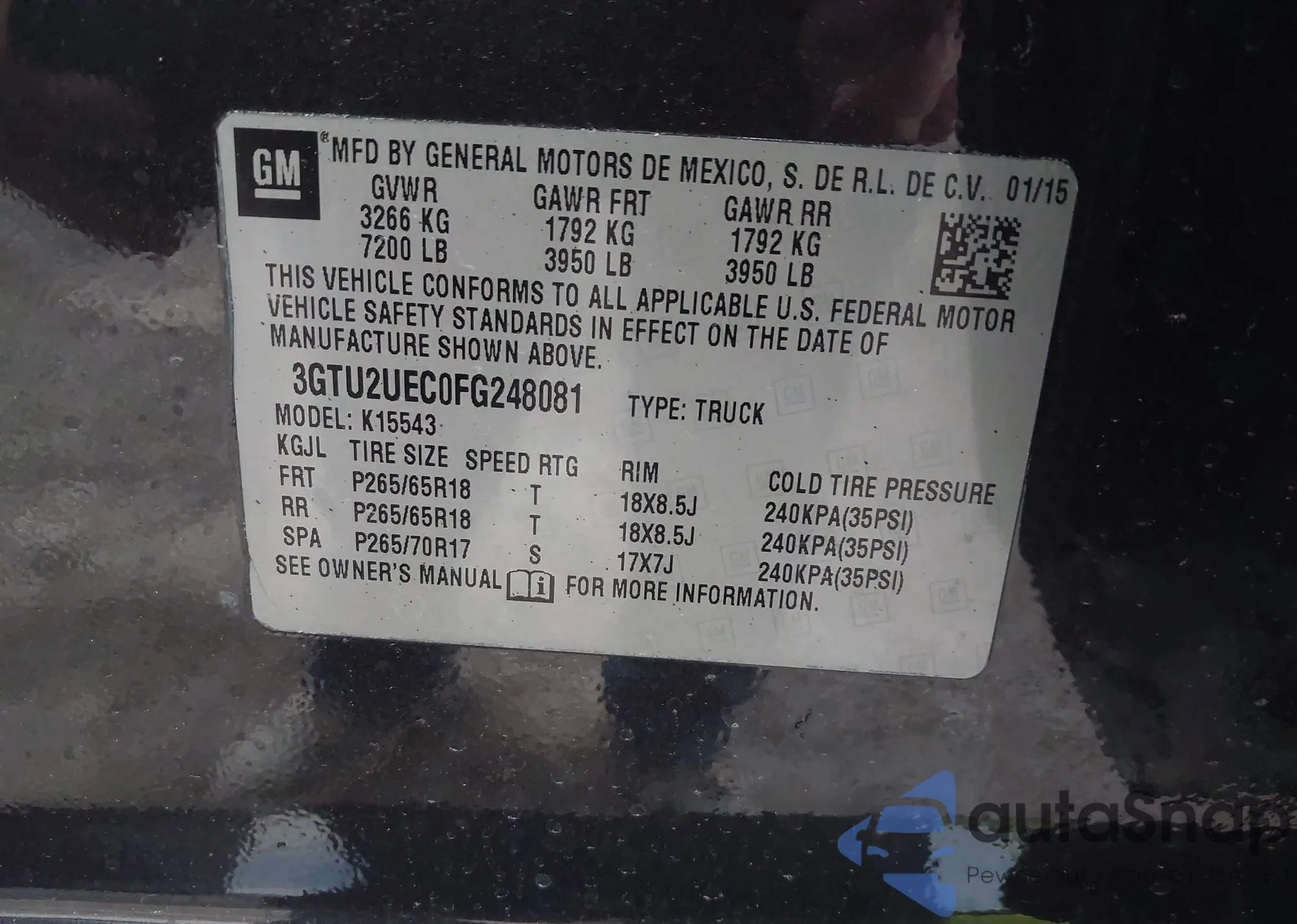 • VIN 2GNALDEK8F1143957