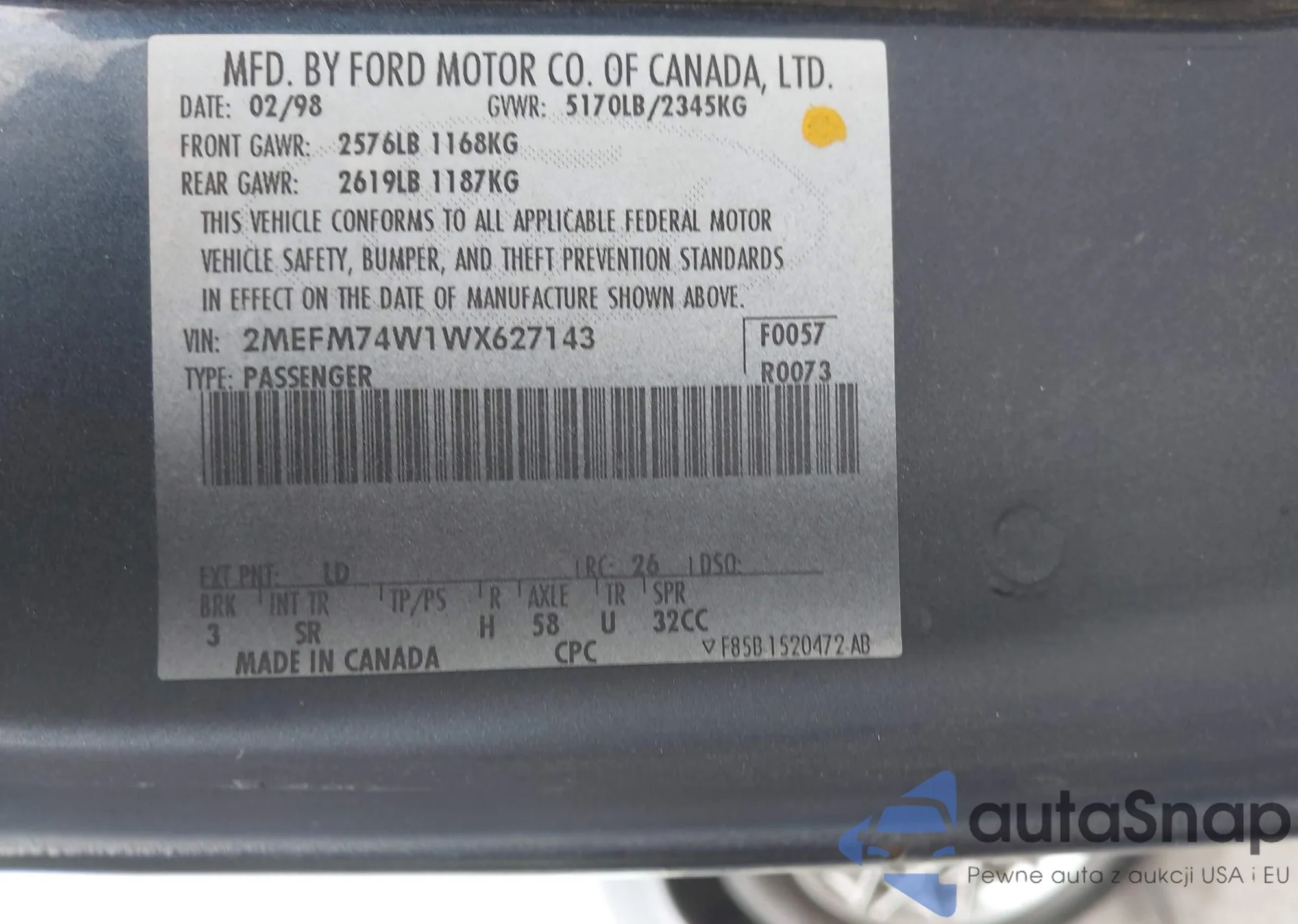 • VIN 2MEFM74W1WX627143