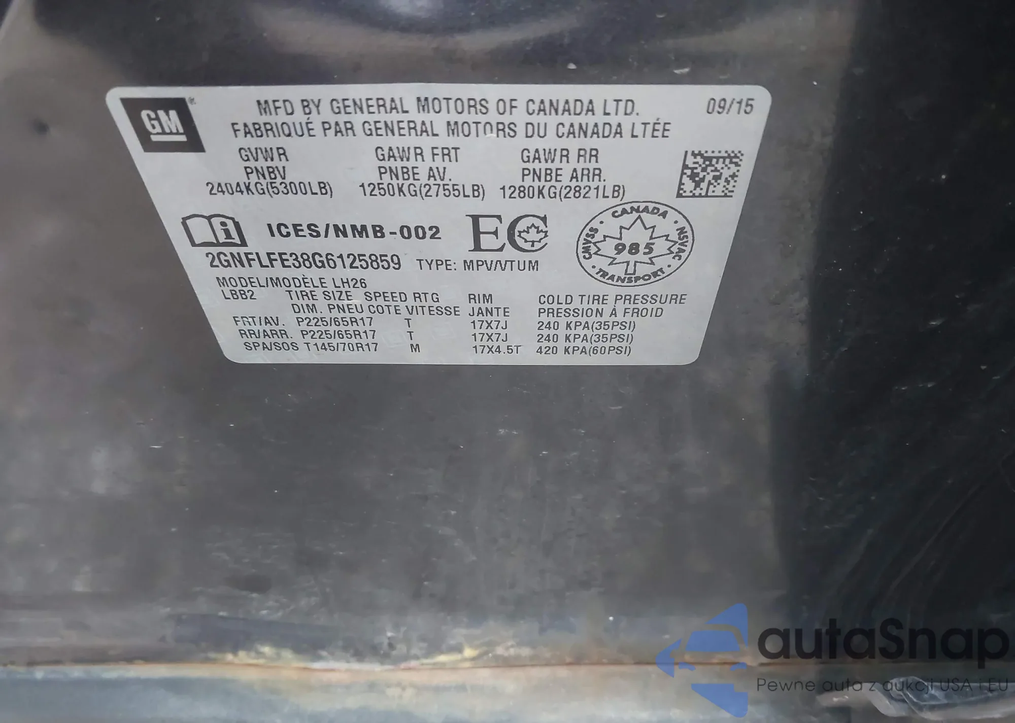 • VIN 2GNFLFE38G6125859