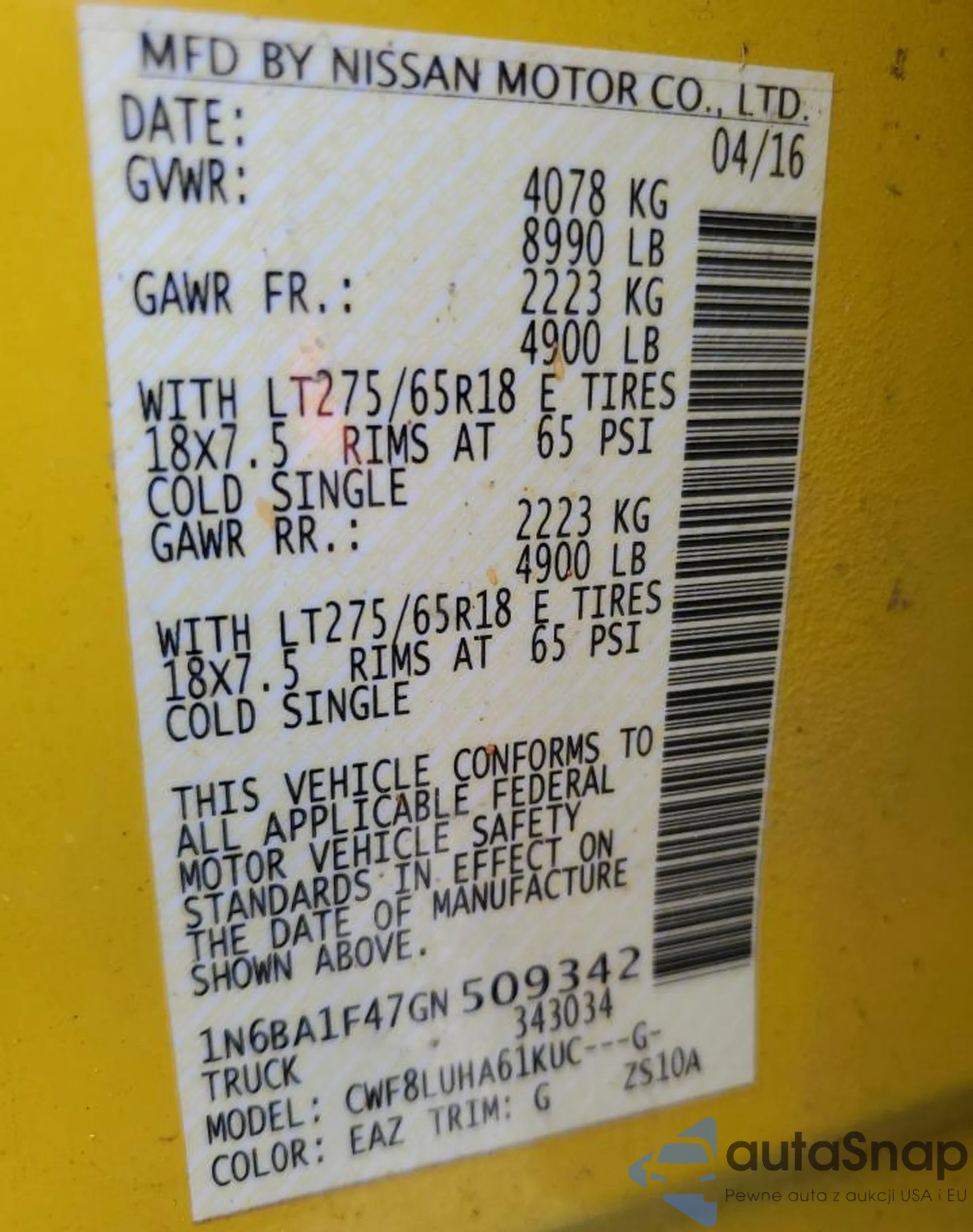 • VIN 1N6BA1F47GN509342