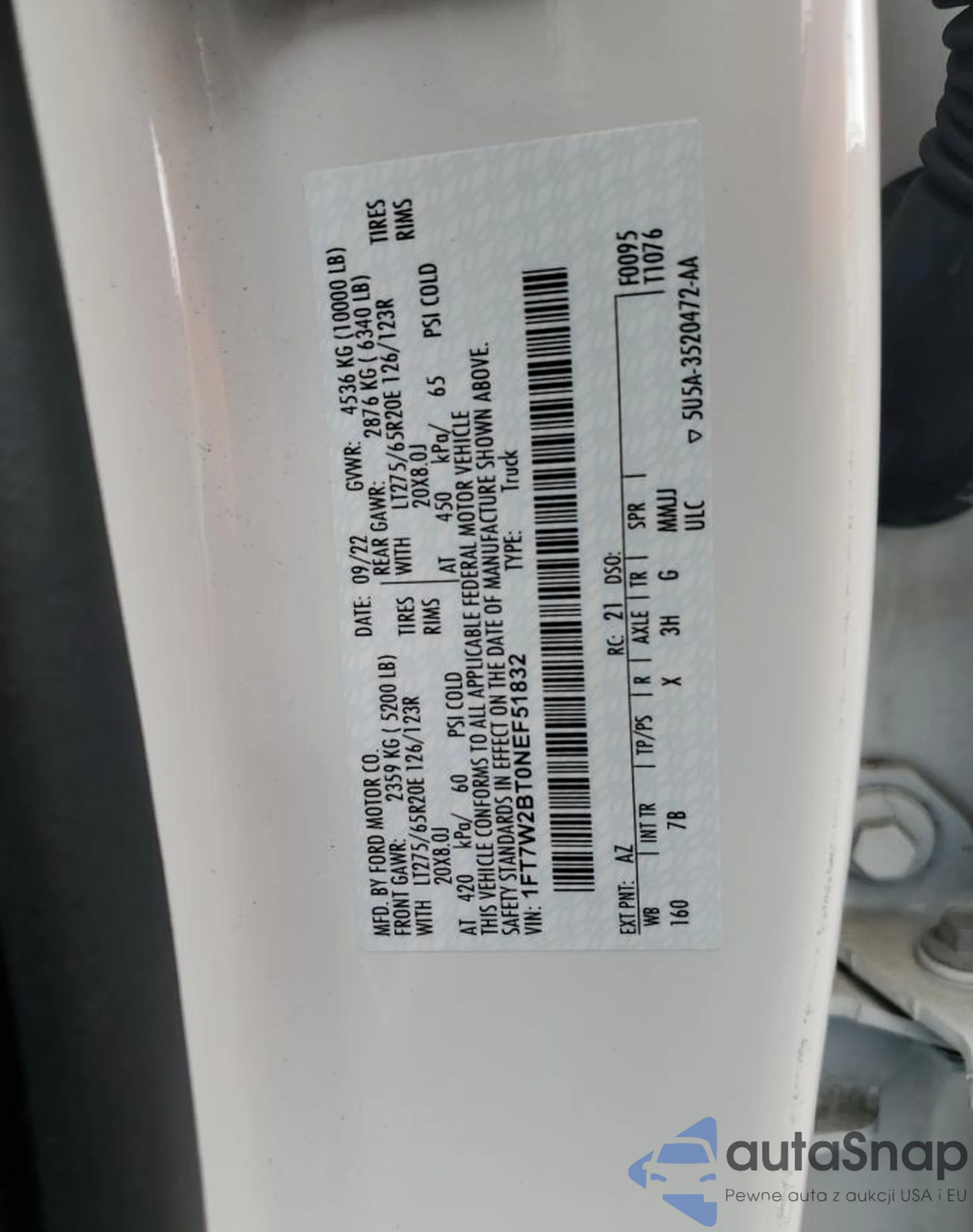 LOT: 86335844 VIN: 1FT7W2BT0NEF51832