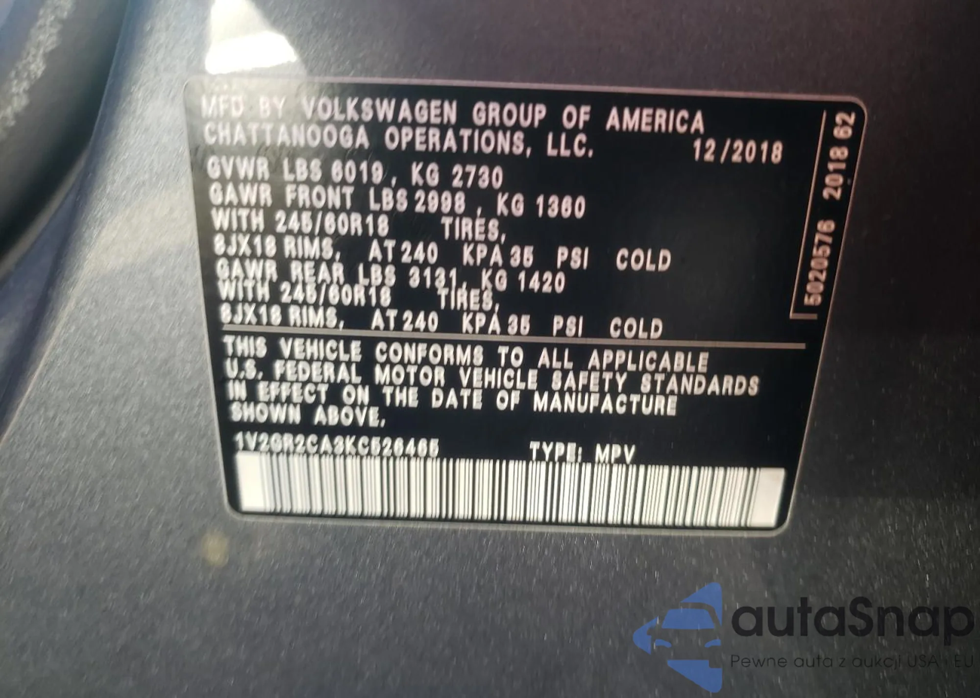 • VIN 1V2GR2CA3KC526465