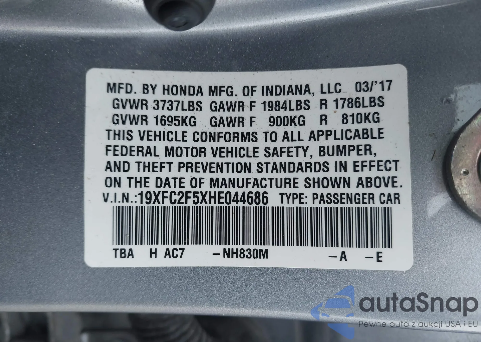 • VIN 19XFC2F5XHE044686
