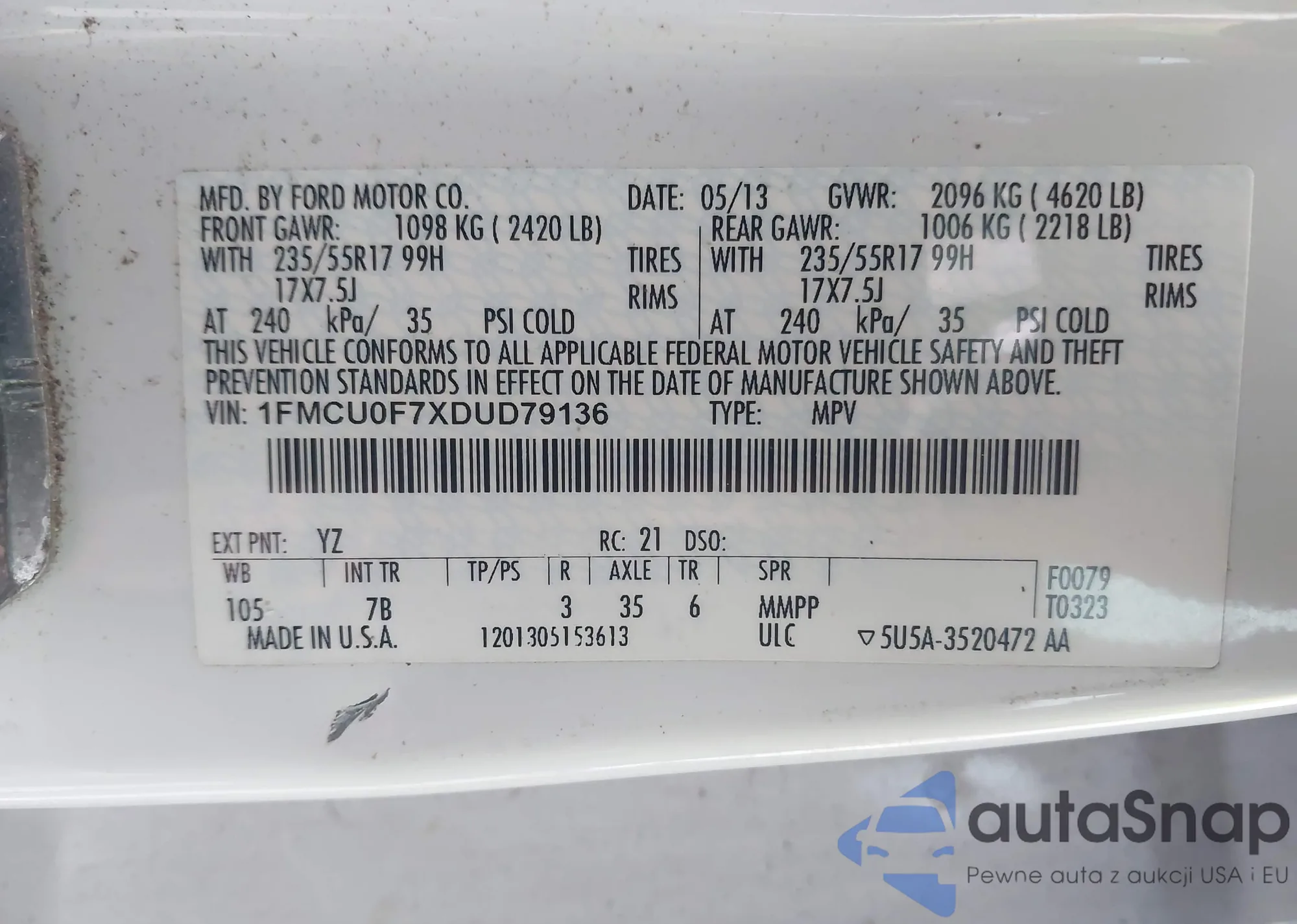 • VIN 1FMCU0F7XDUD79136