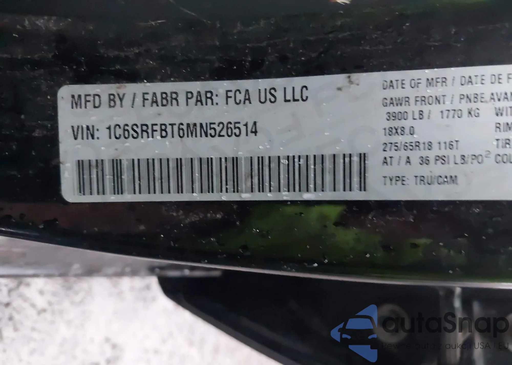 • VIN 1C6SRFBT6MN526514