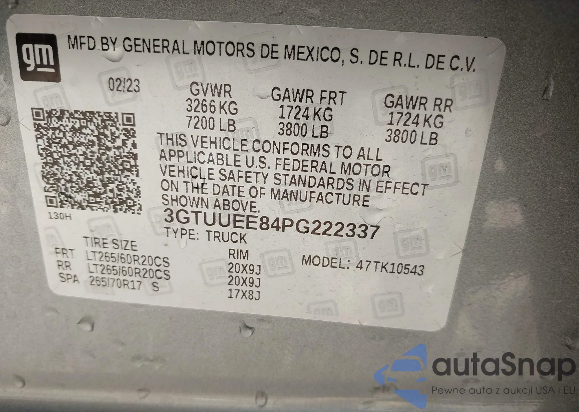 LOT: 40842703 VIN: 3GTUUEE84PG222337
