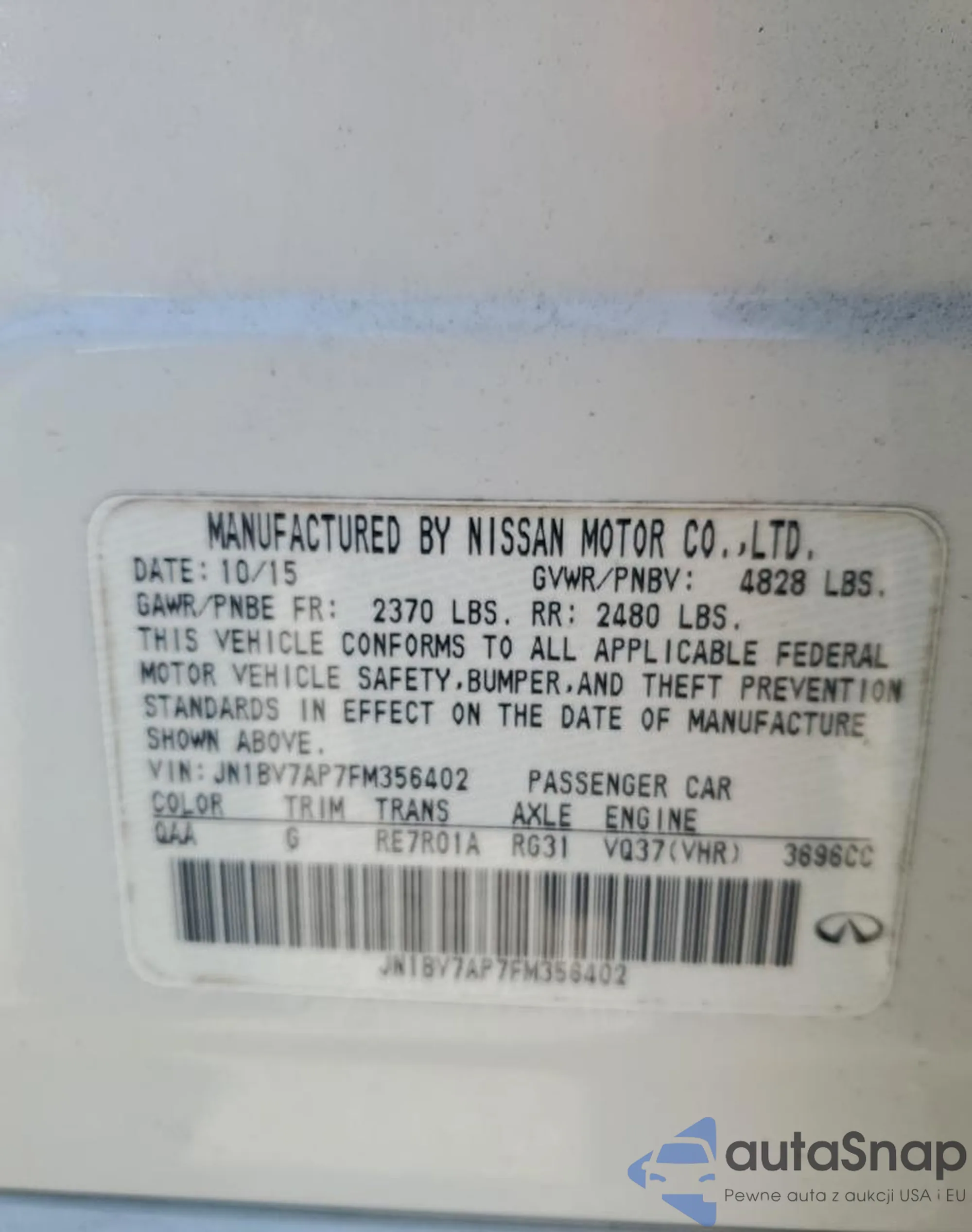 LOT: 82039934 VIN: JN1BV7AP7FM356402