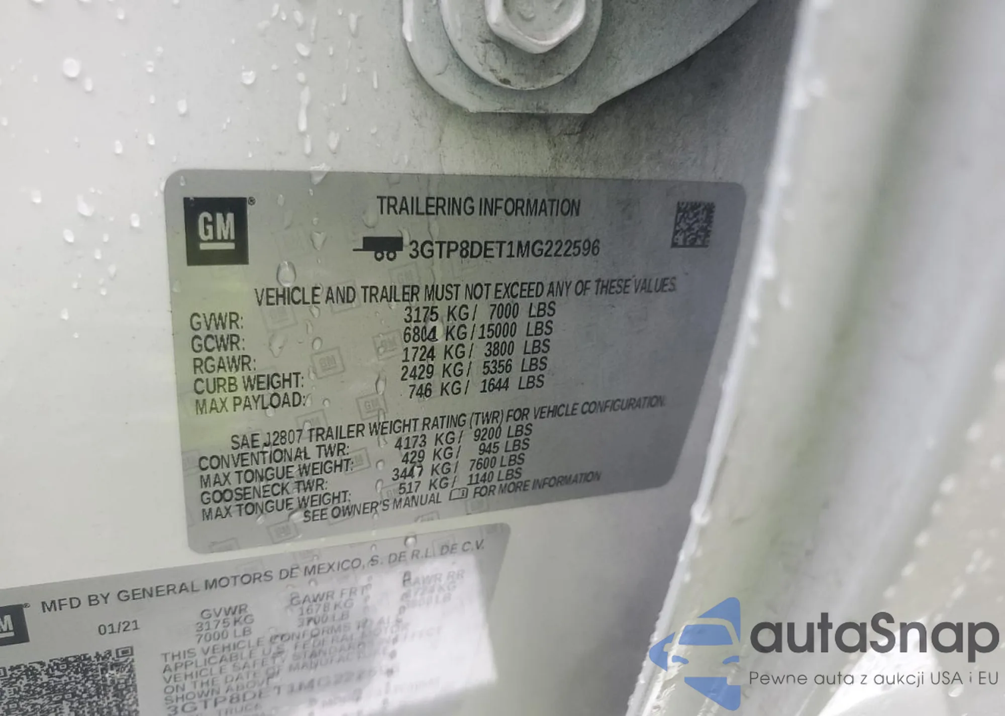 • VIN 3GTU9FED4MG296650