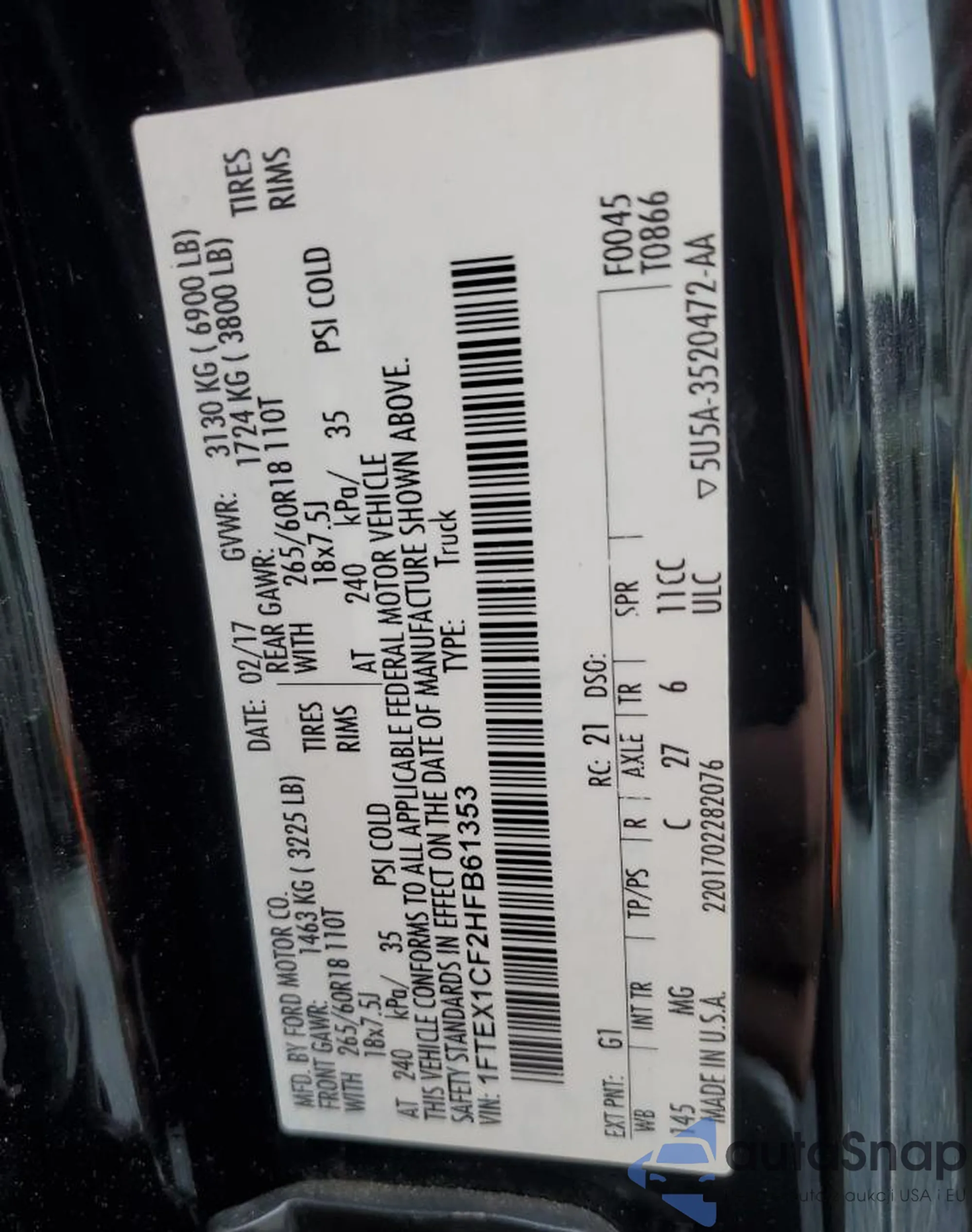 • VIN 1FTEX1CF2HFB61353