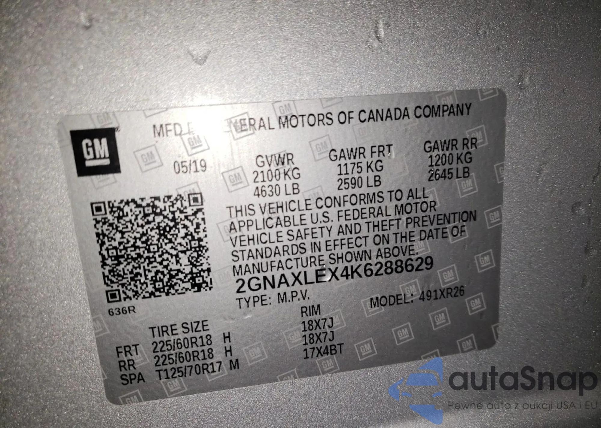 • VIN 2GNAXLEX4K6288629
