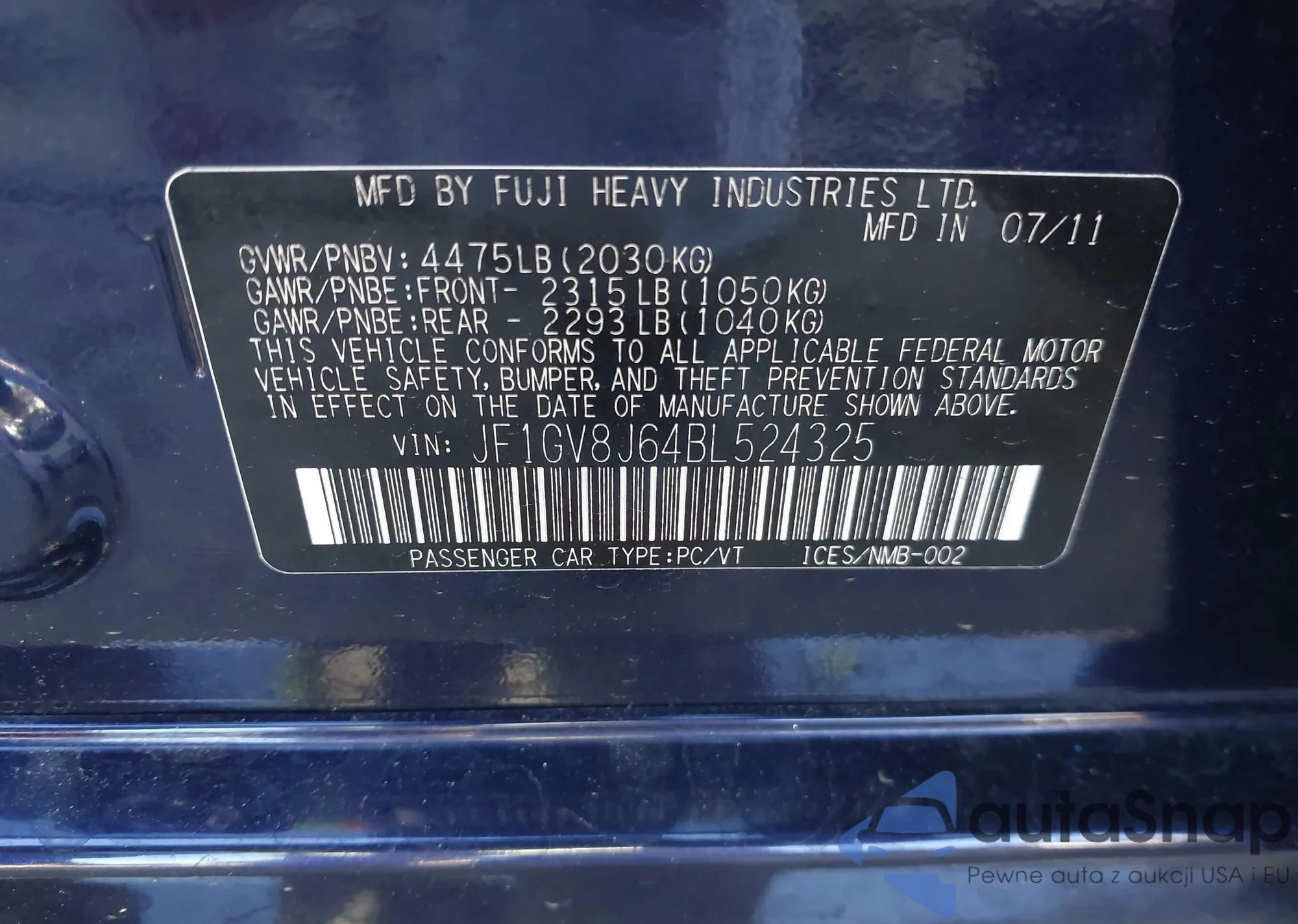 • VIN JF1GV8J64BL524325