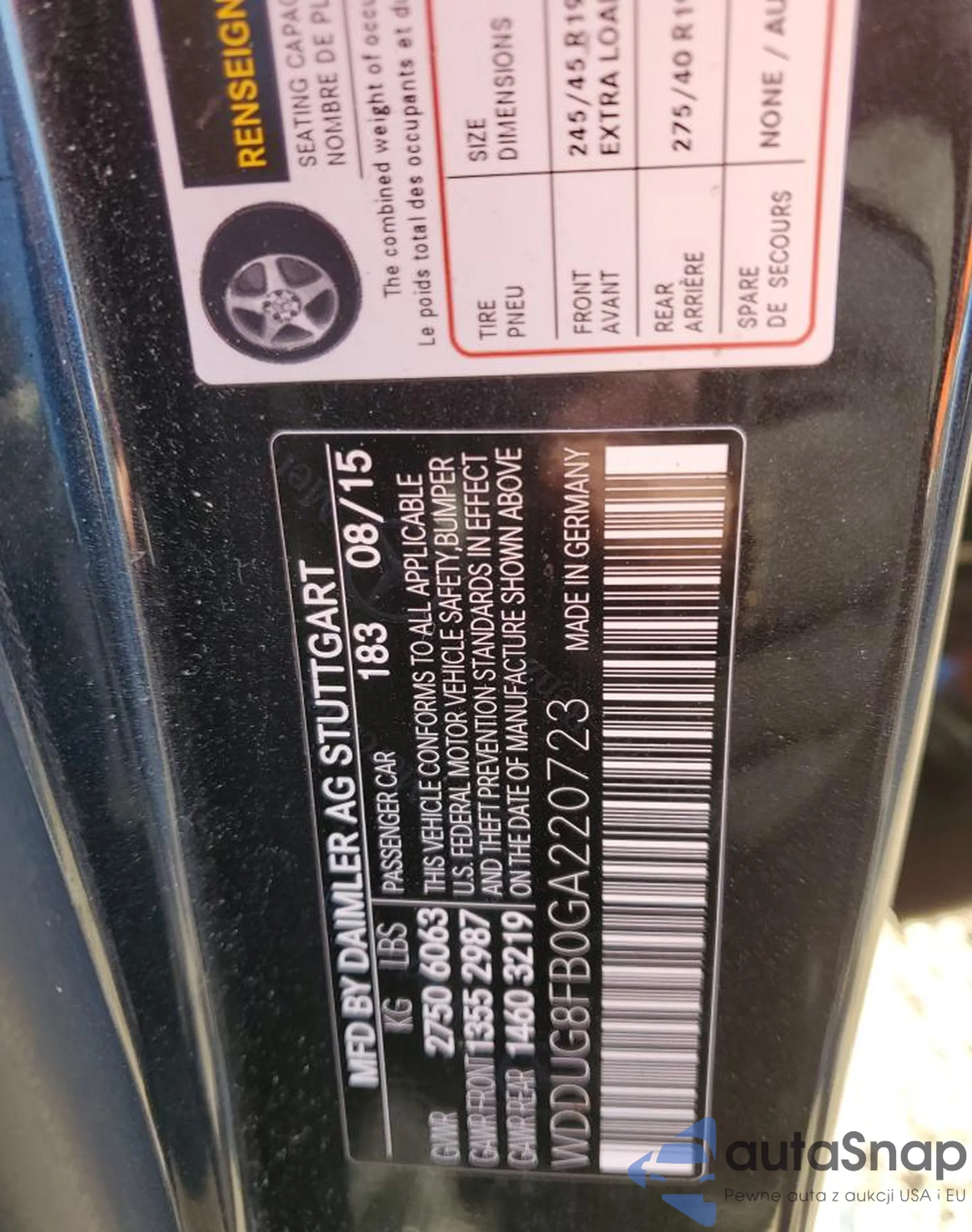 • VIN WDDUG8FB0GA220723