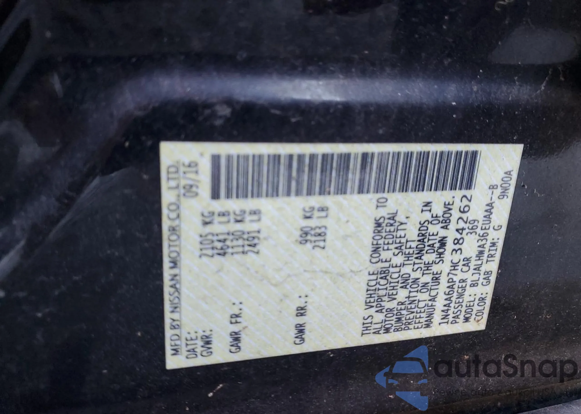 • VIN 1N4AA6AP7HC384262