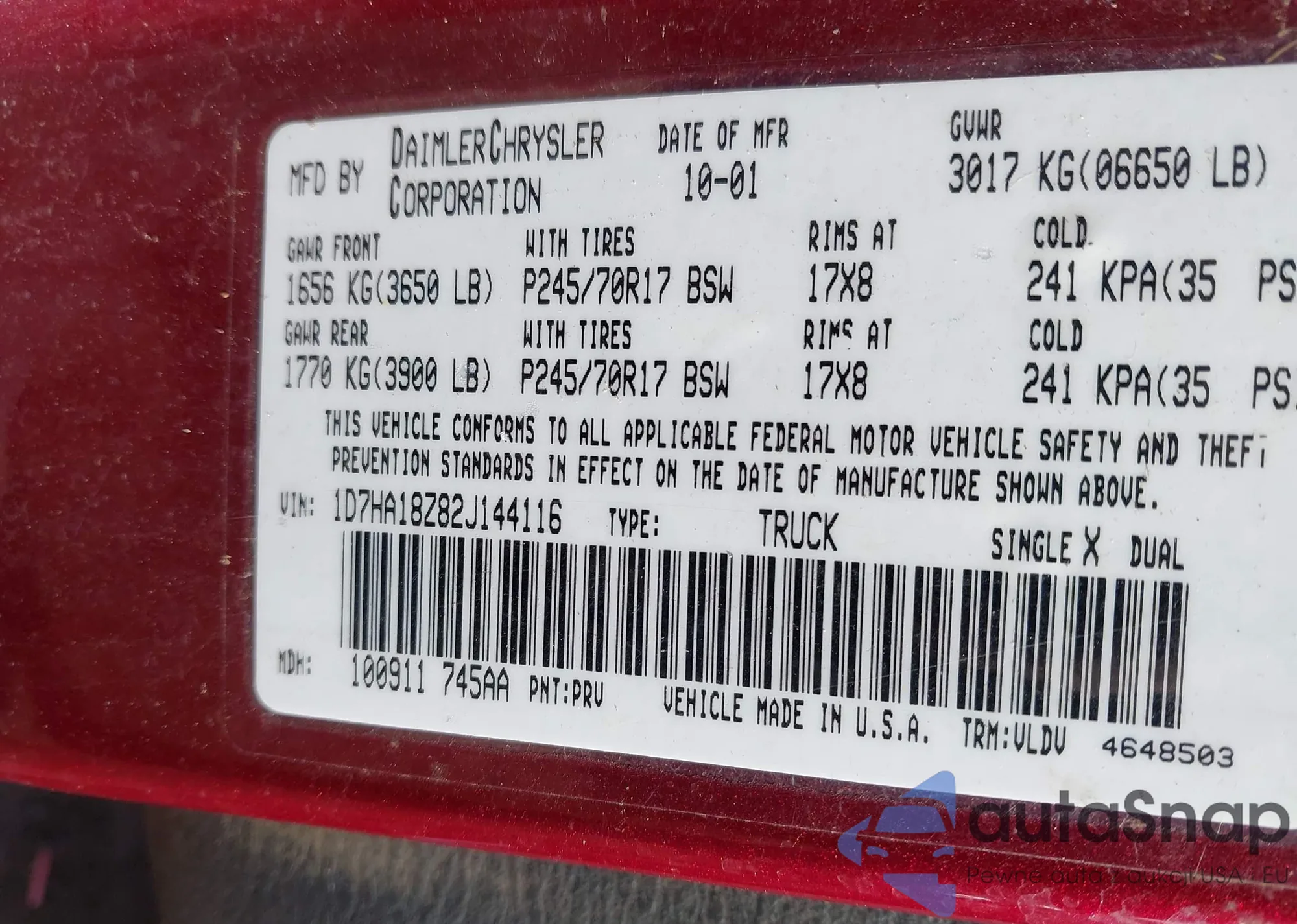 LOT: 41318678 VIN: 2C8GF68424R291585
