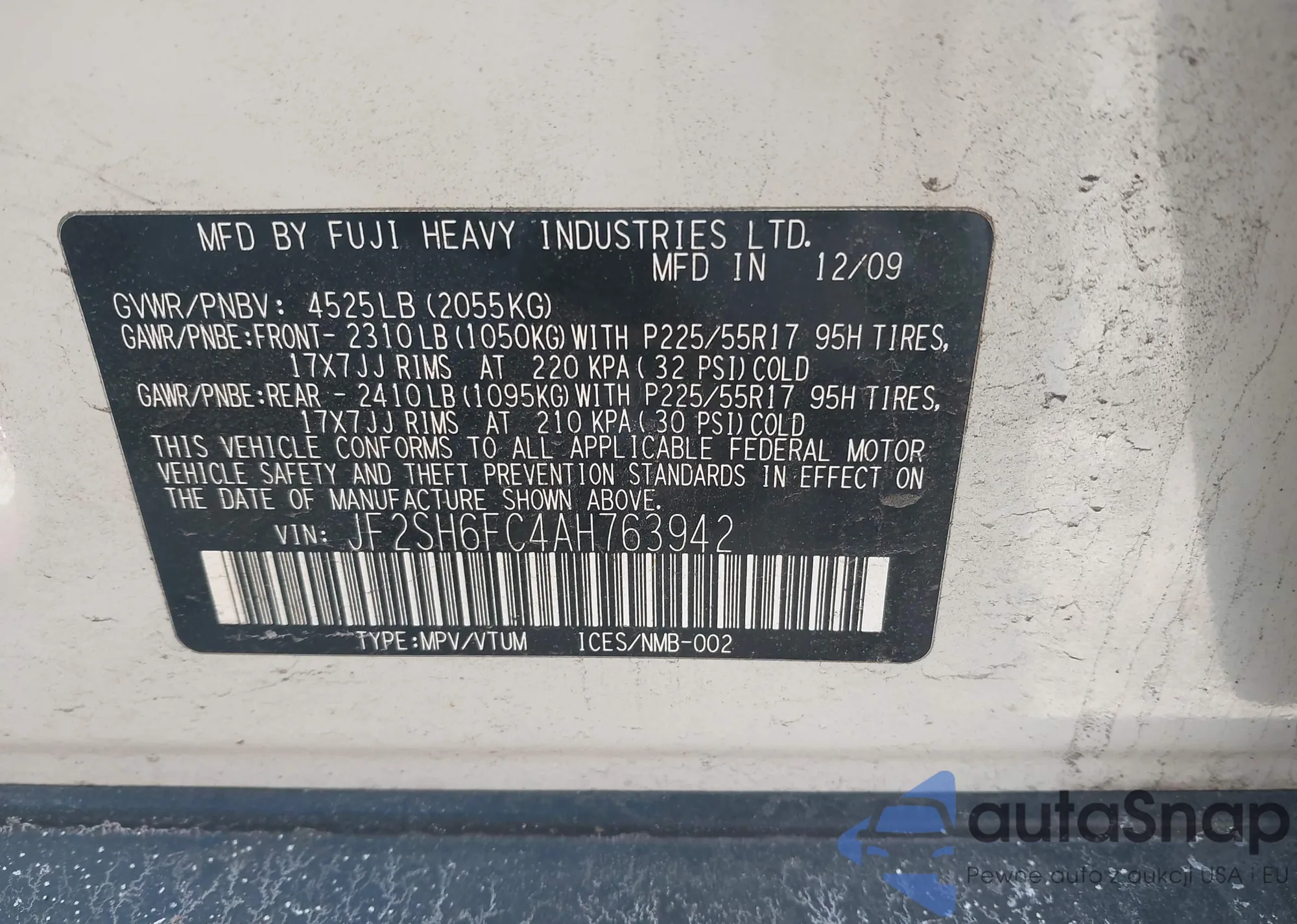 • VIN JF2SH6FC4AH763942