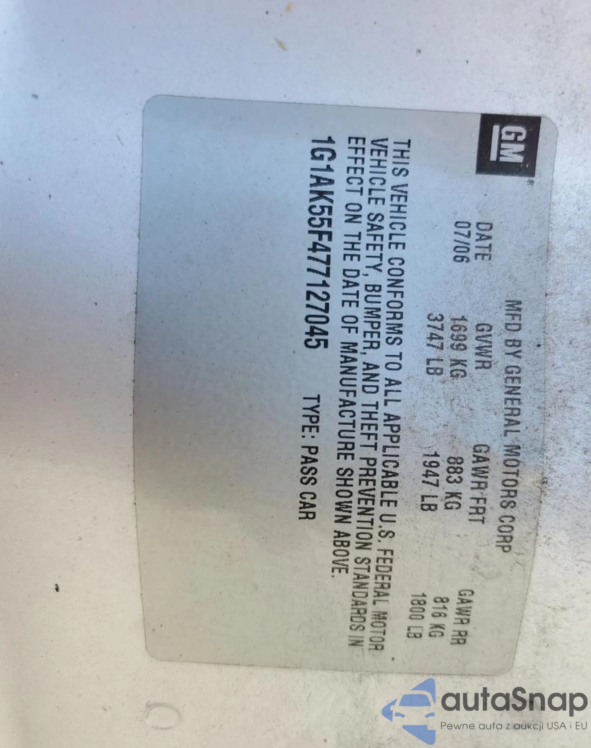 • VIN 1G1AK55F477127045