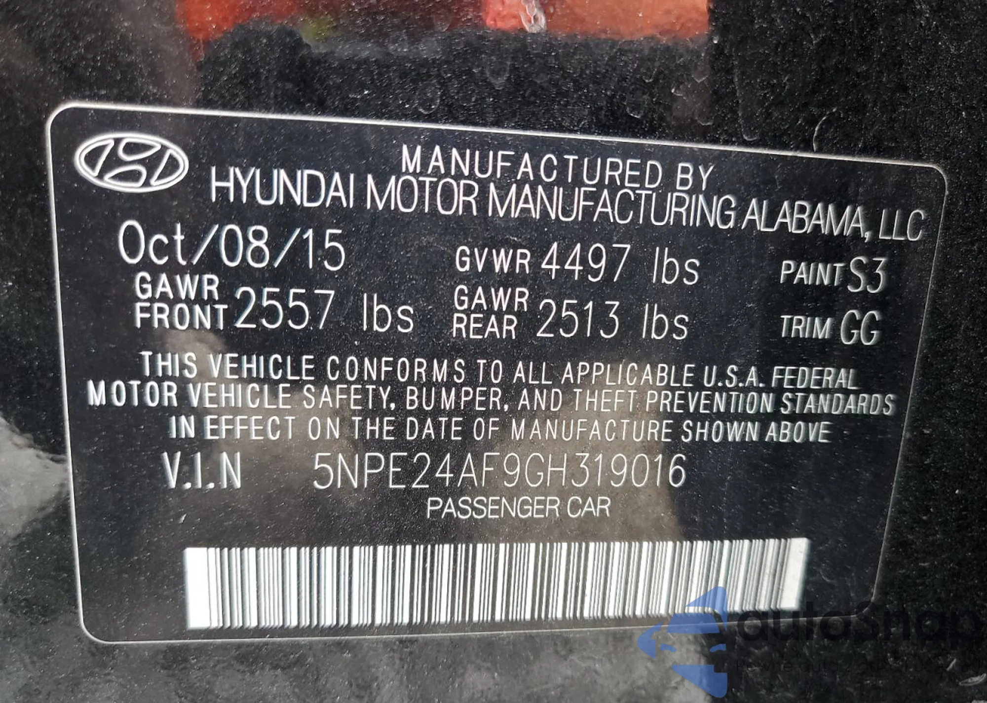 • VIN 5NPE24AF9GH319016