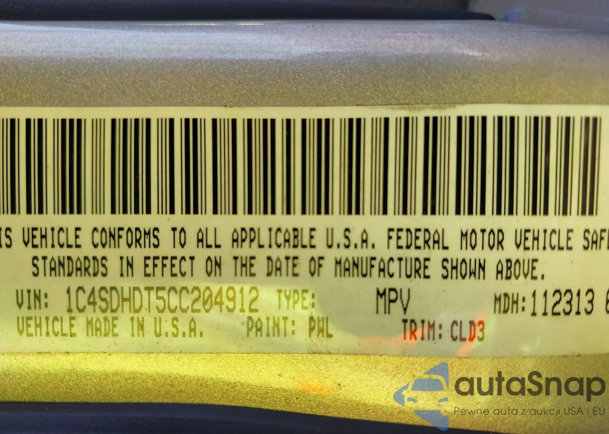 • VIN 1C4SDHDT5CC204912