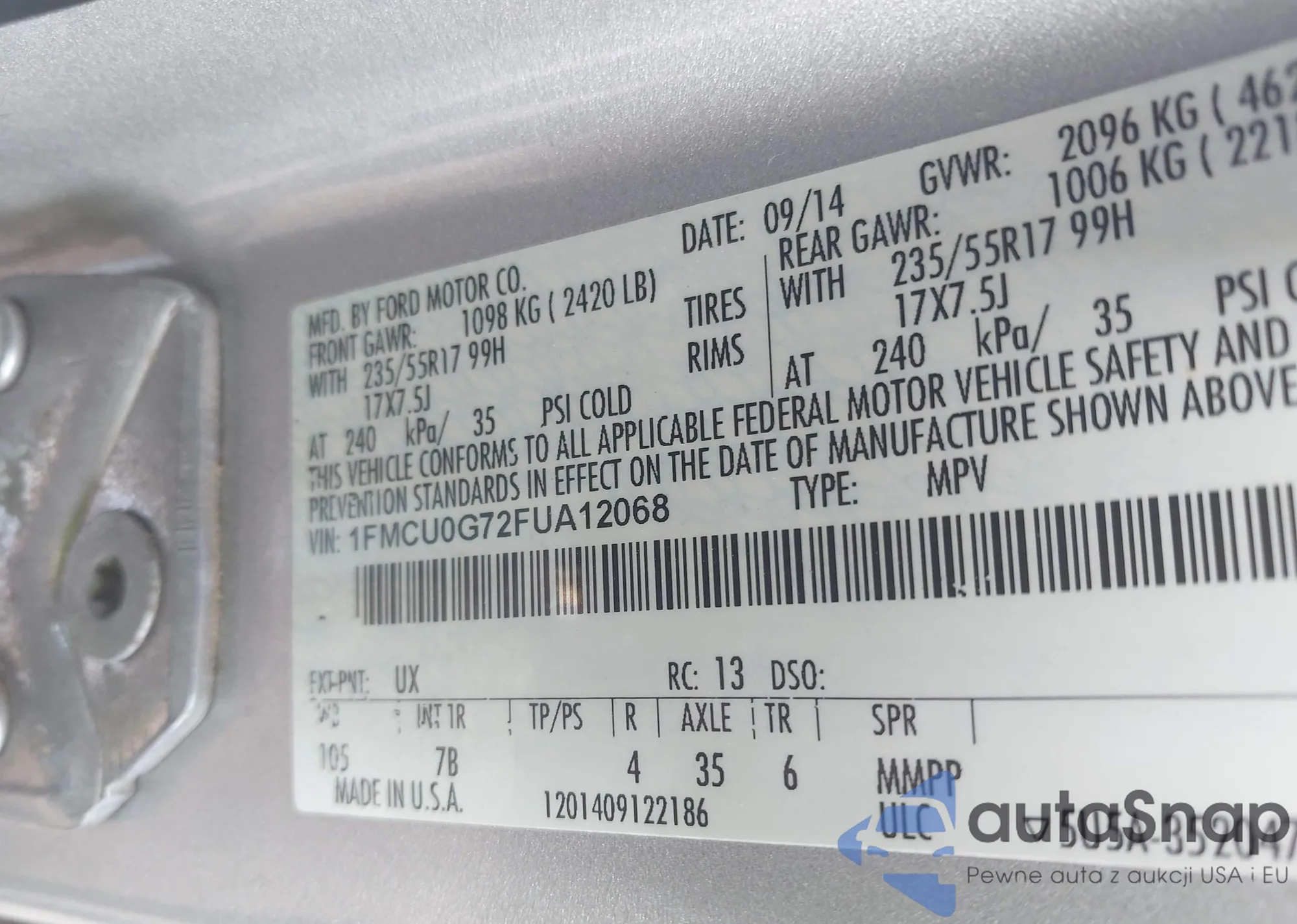 LOT: 41471481 VIN: 1FMCU0G72FUA12068