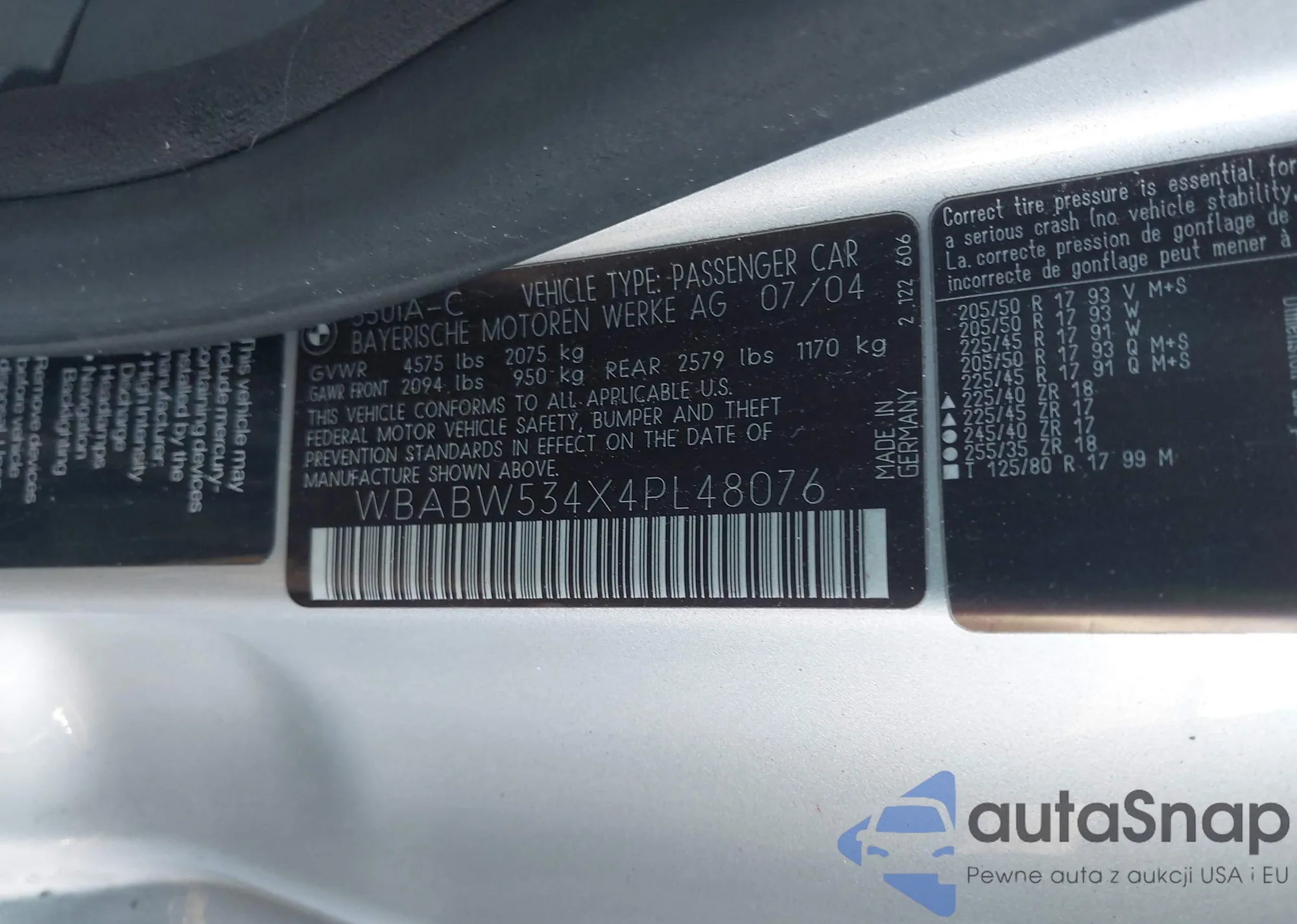 • VIN WBABW534X4PL48076