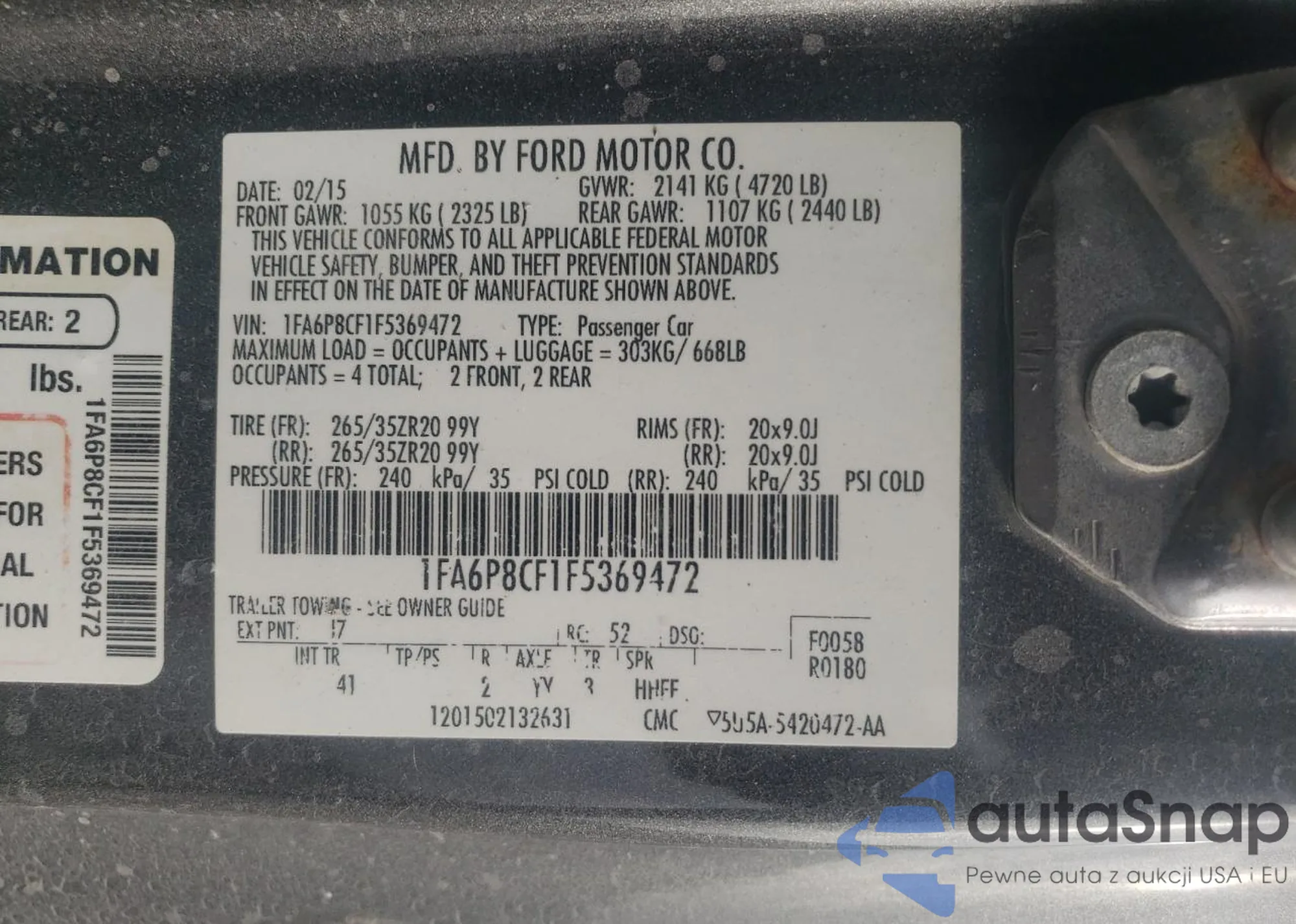• VIN 1FA6P8CF1F5369472