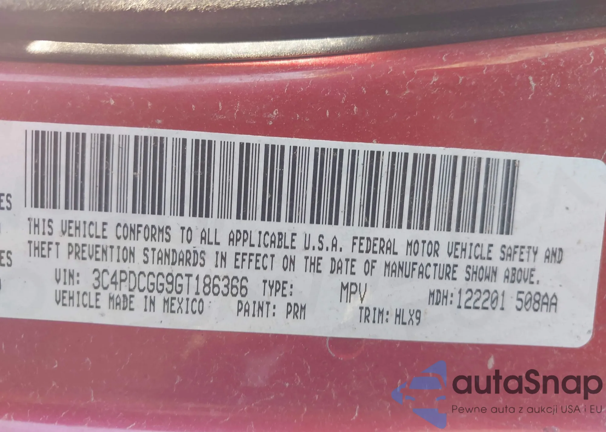 • VIN 5J6RM3H77DL016239