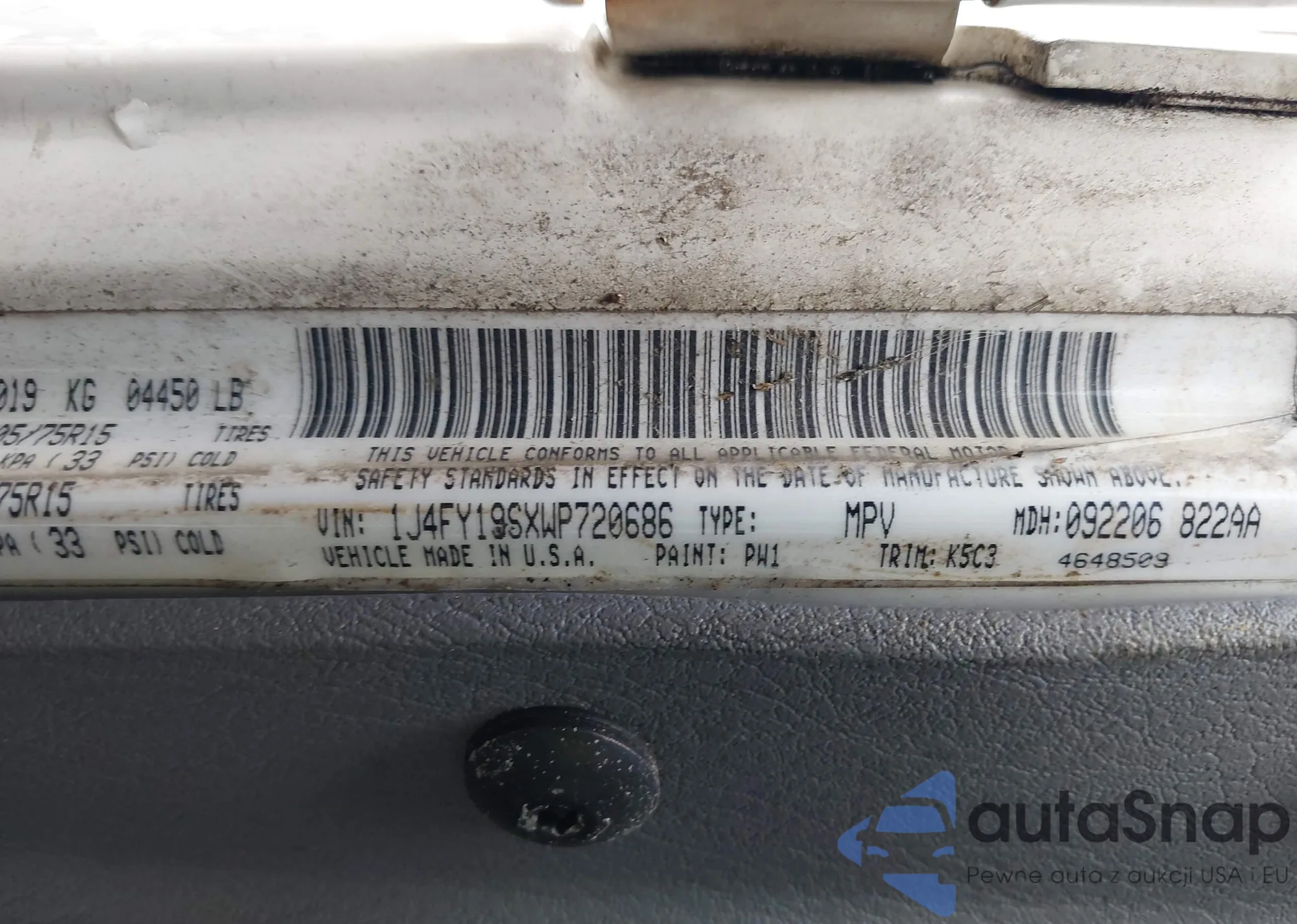 LOT: 39531677 VIN: 1J4FY19SXWP720686