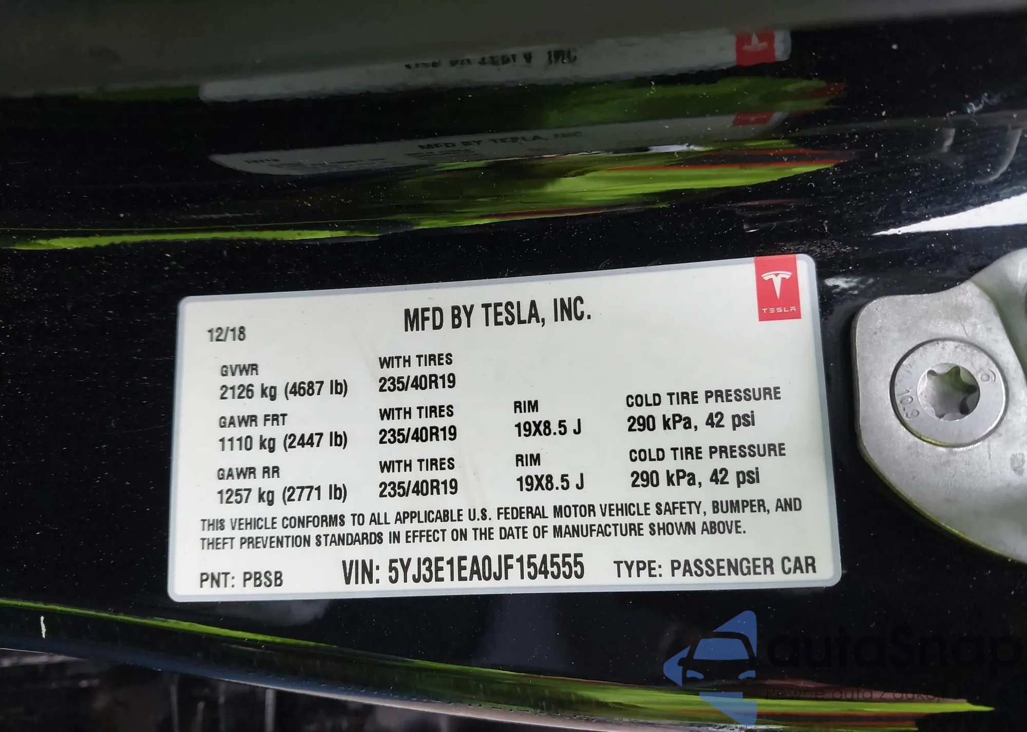 • VIN 5YJ3E1EA0JF154555