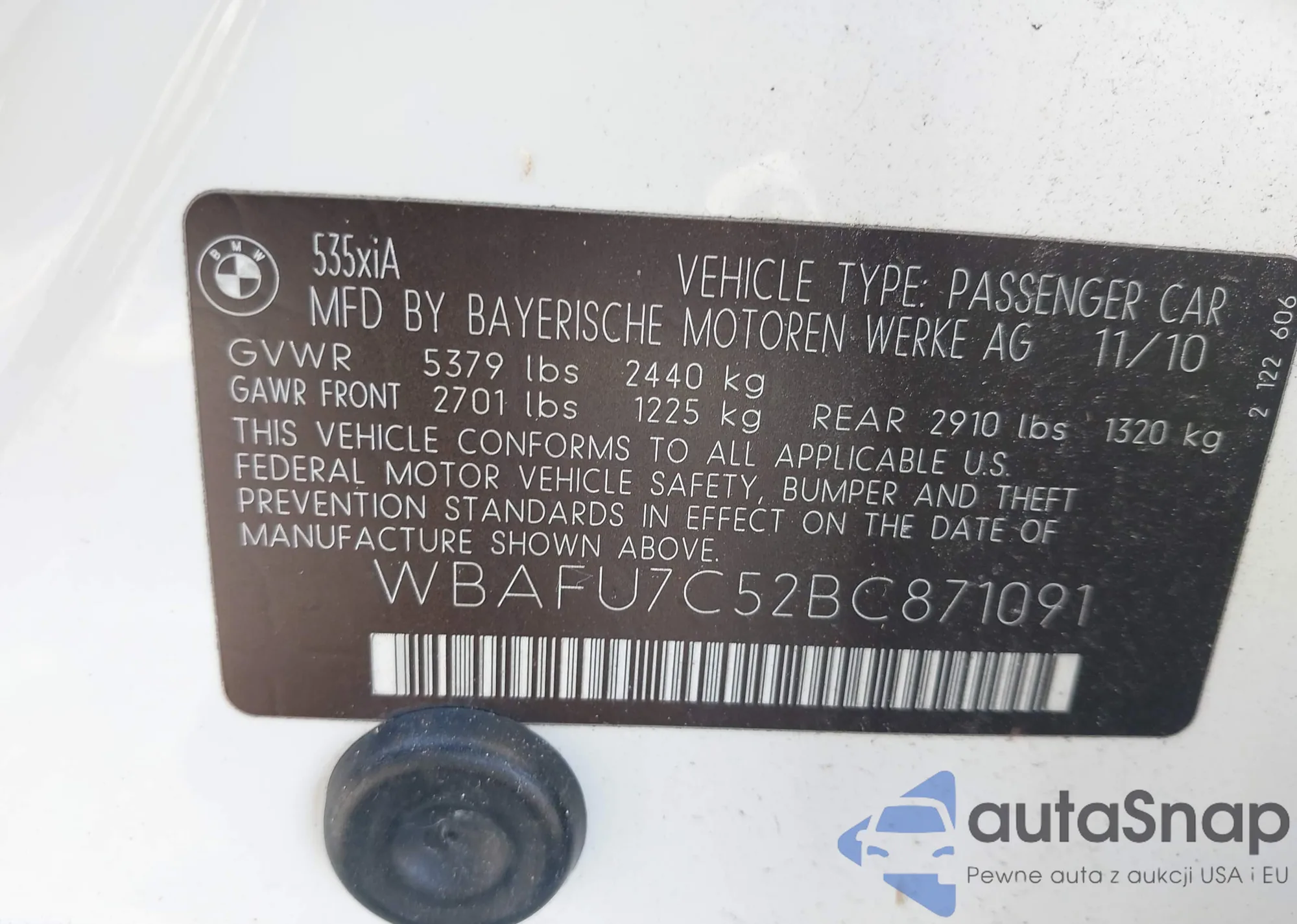 • VIN WBAFU7C52BC871091