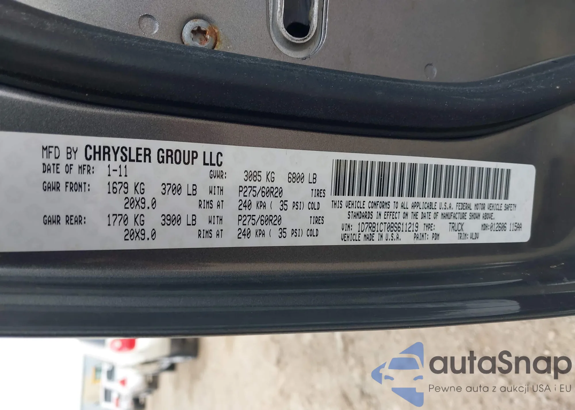 • VIN 1D7RB1CT0BS611219