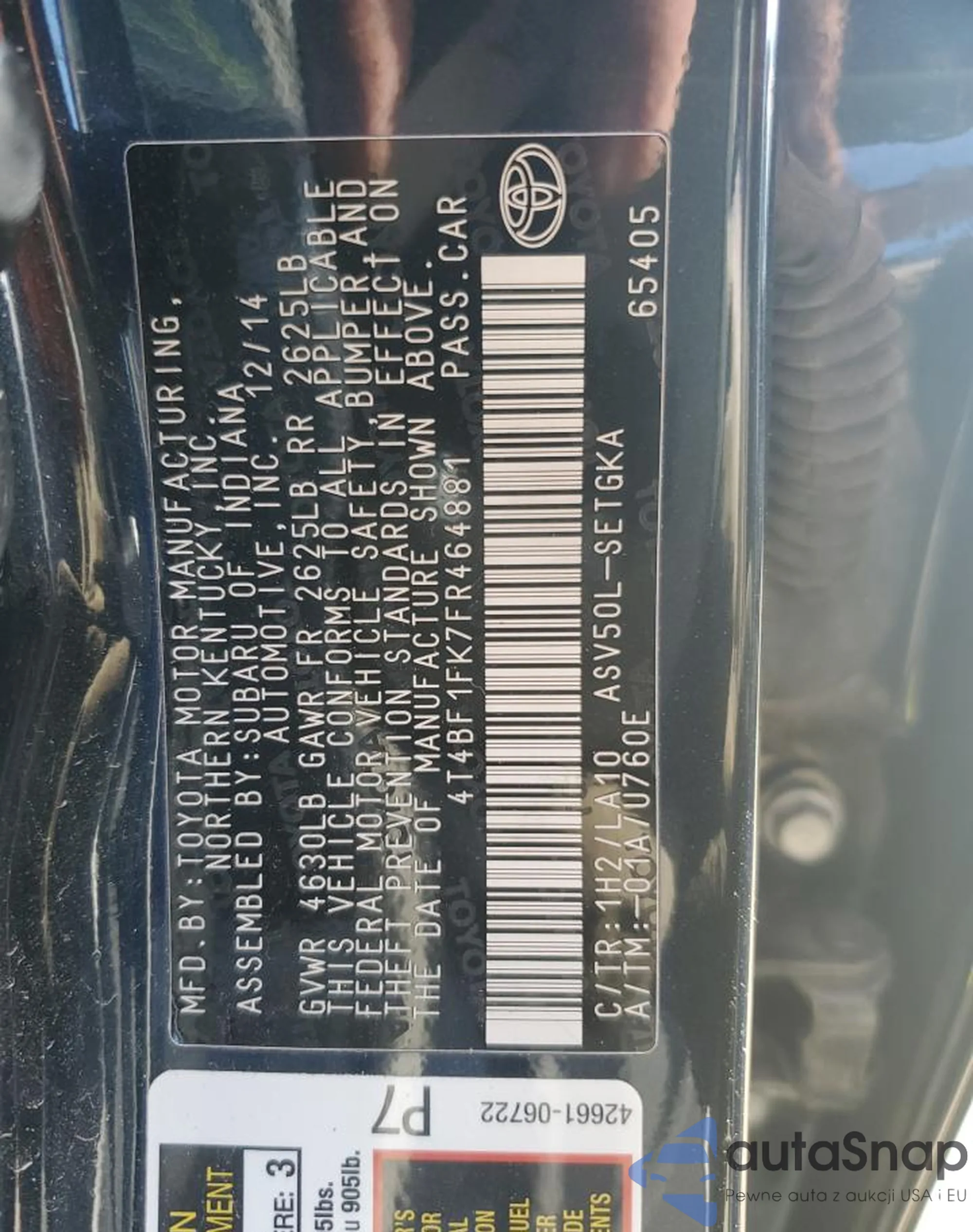 • VIN 4T4BF1FK7FR464881