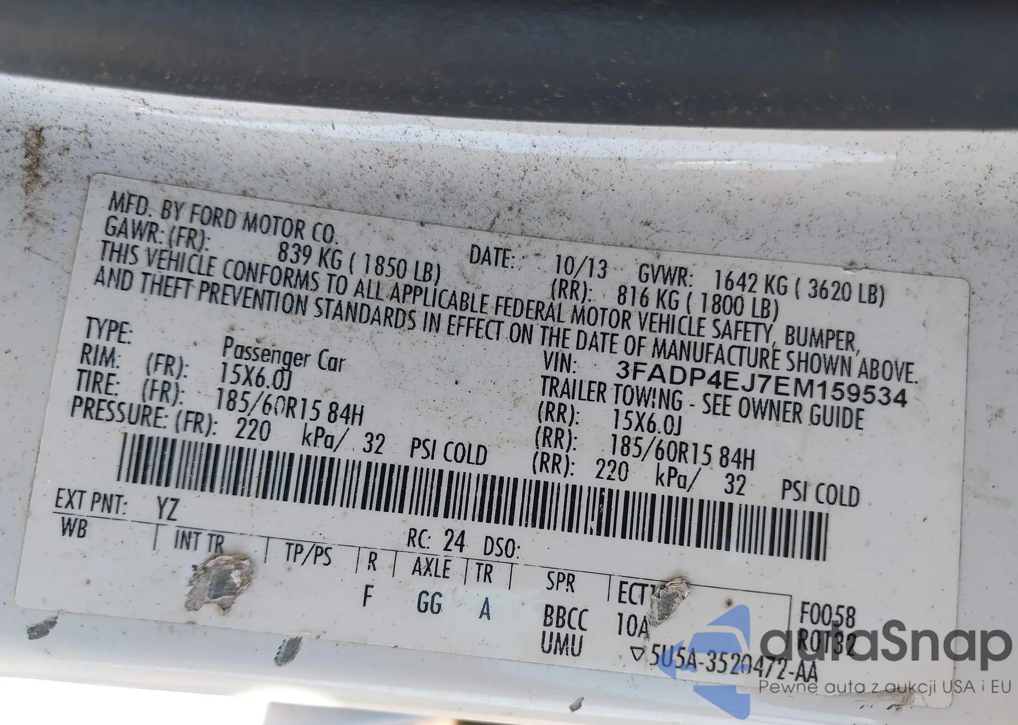 • VIN 3FADP4EJ7EM159534