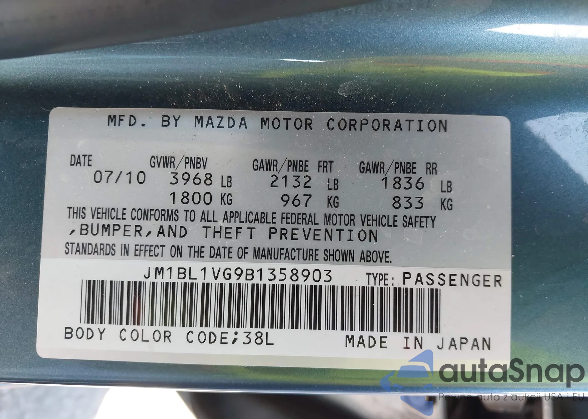 LOT: 41637224 VIN: JM1BL1VG9B1358903