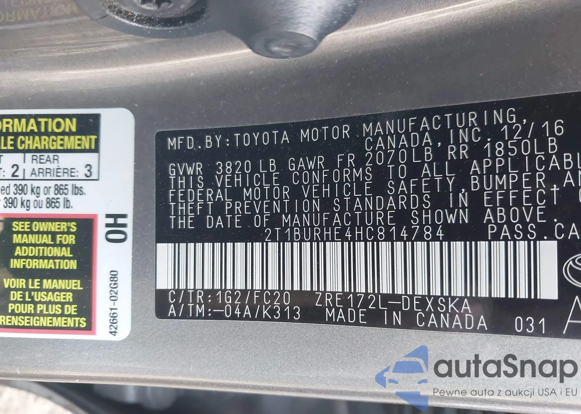 • VIN 2T1BURHE4HC814784