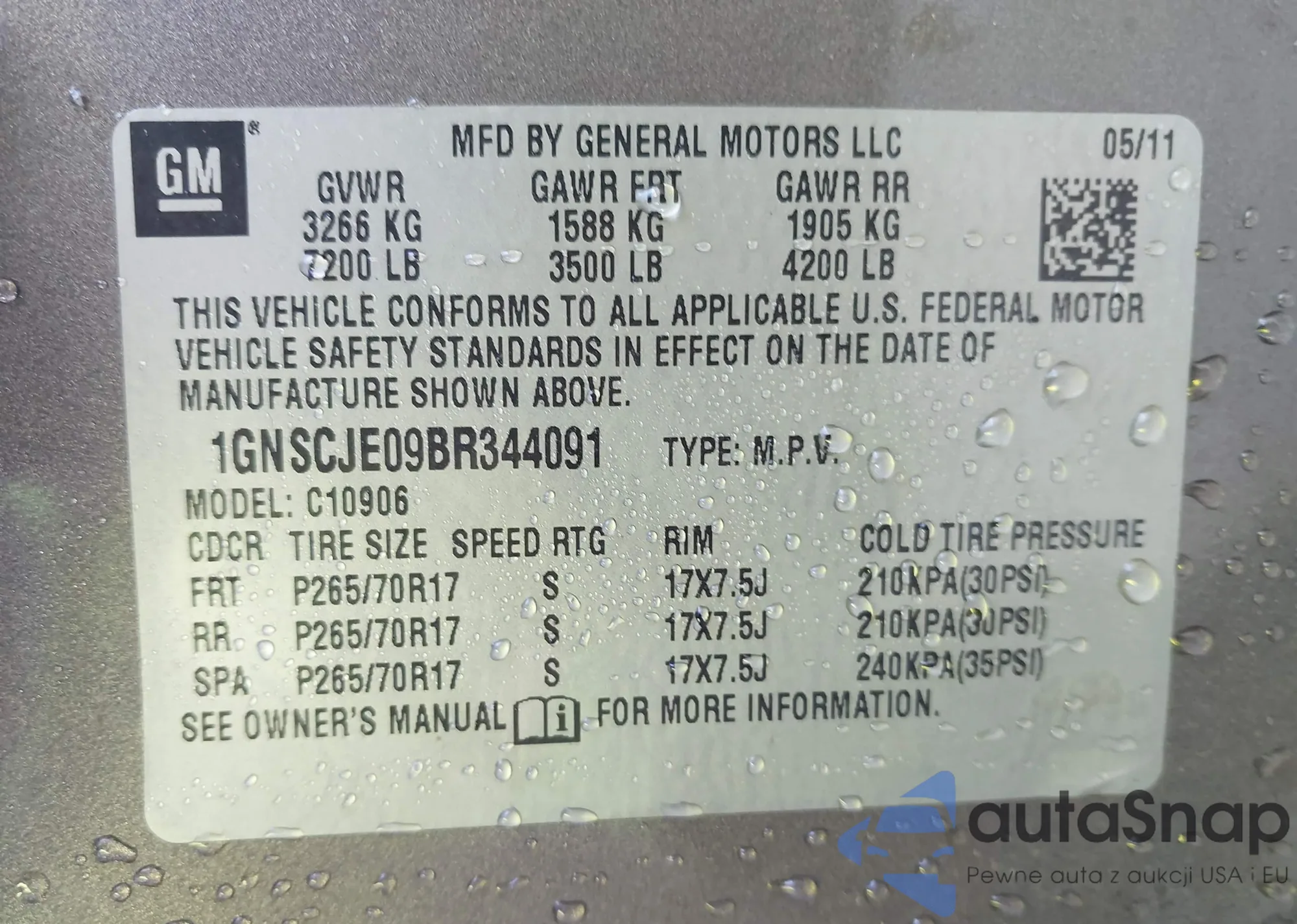 • VIN 1GNSCJE09BR344091
