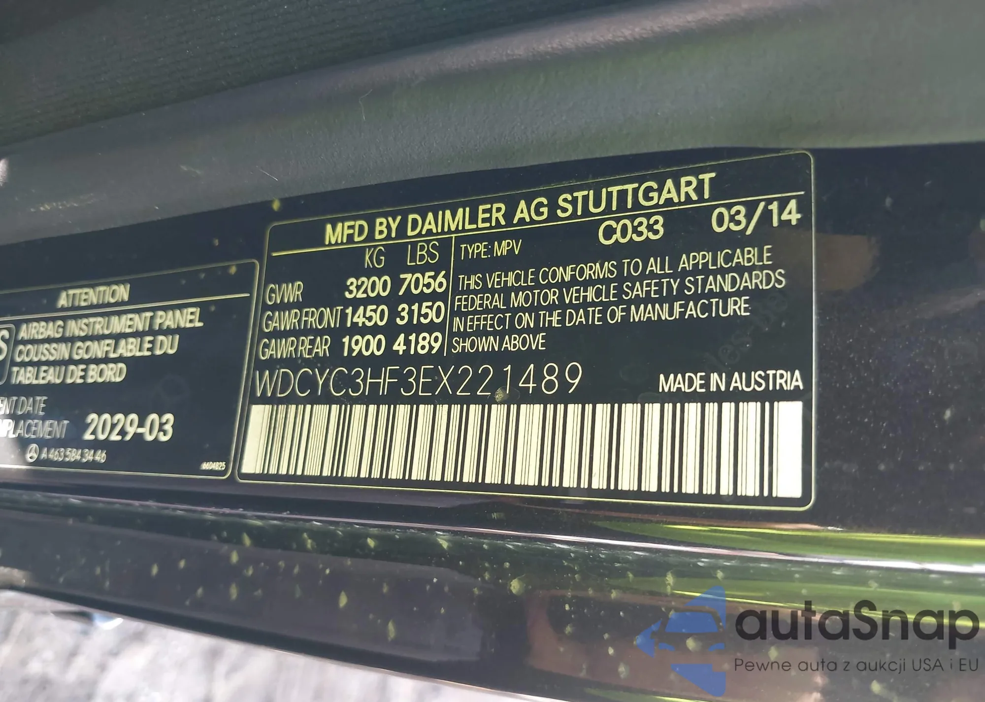 • VIN WDCYC3HF3EX221489