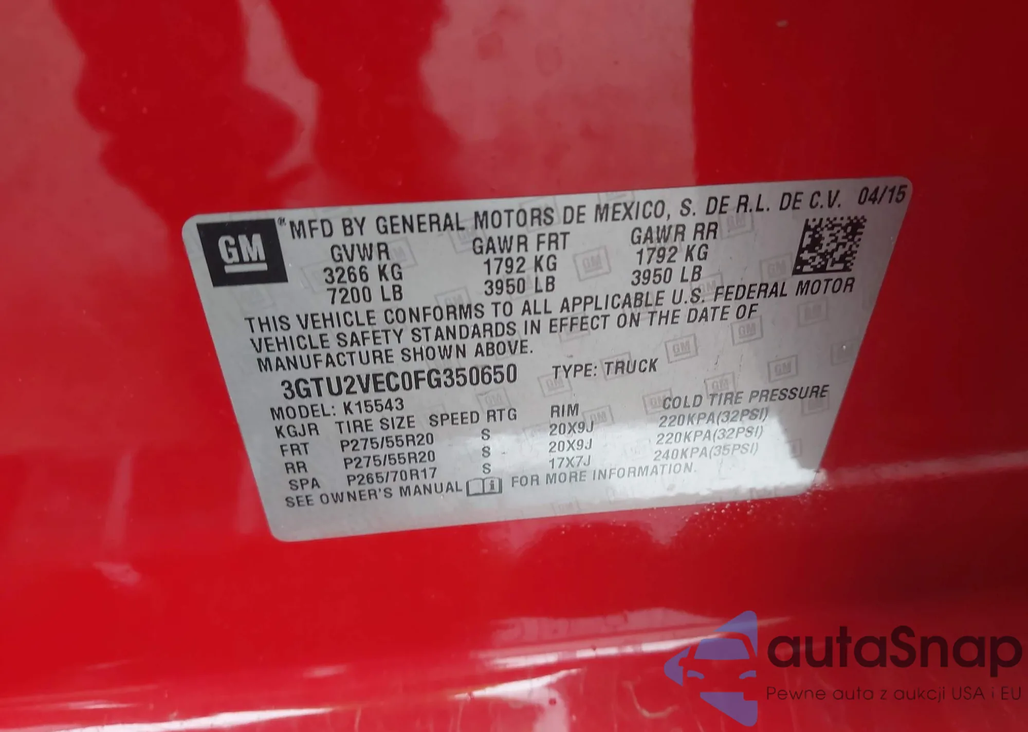 • VIN 3GTU2VEC0FG350650