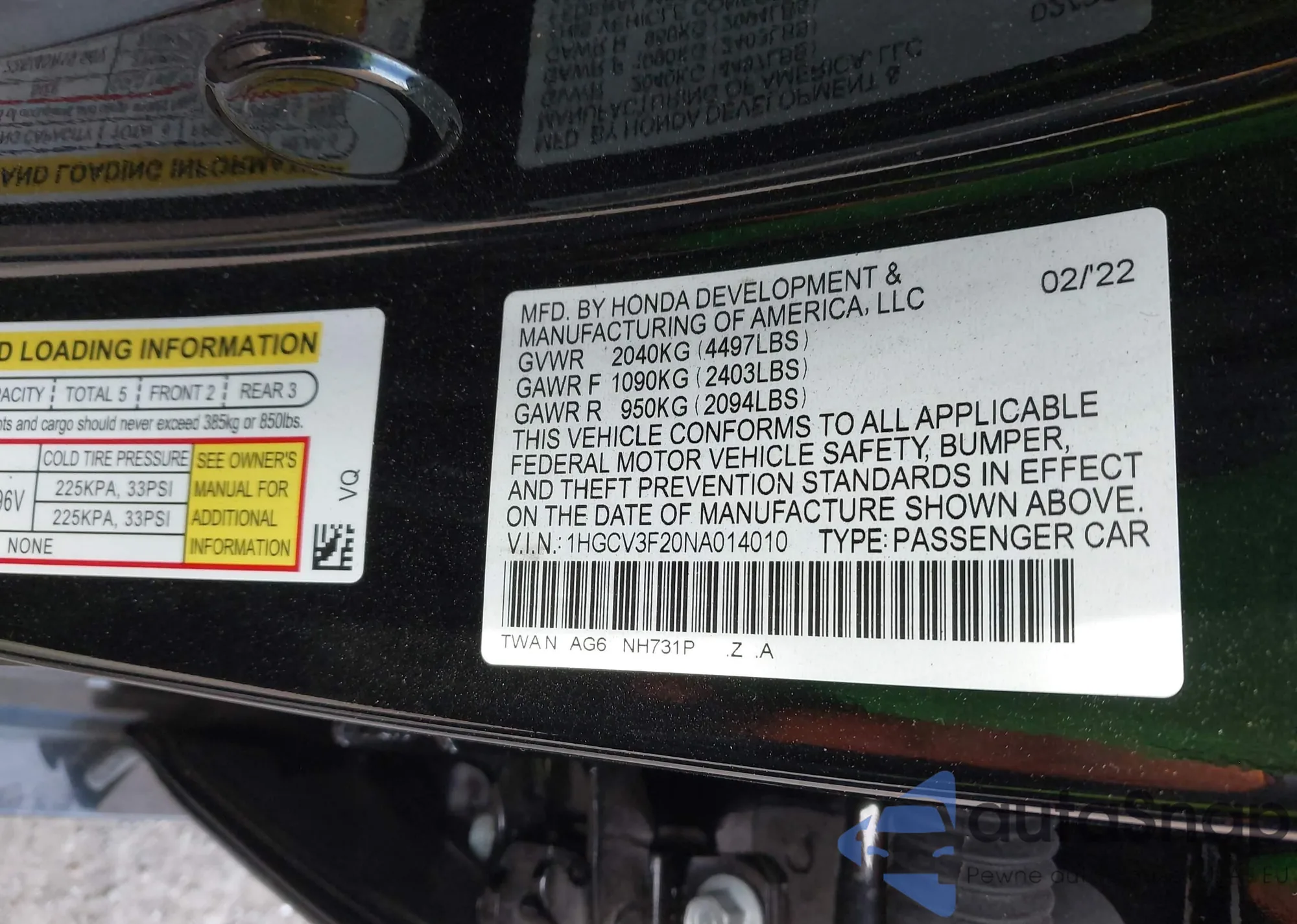 • VIN 1HGCV3F20NA014010