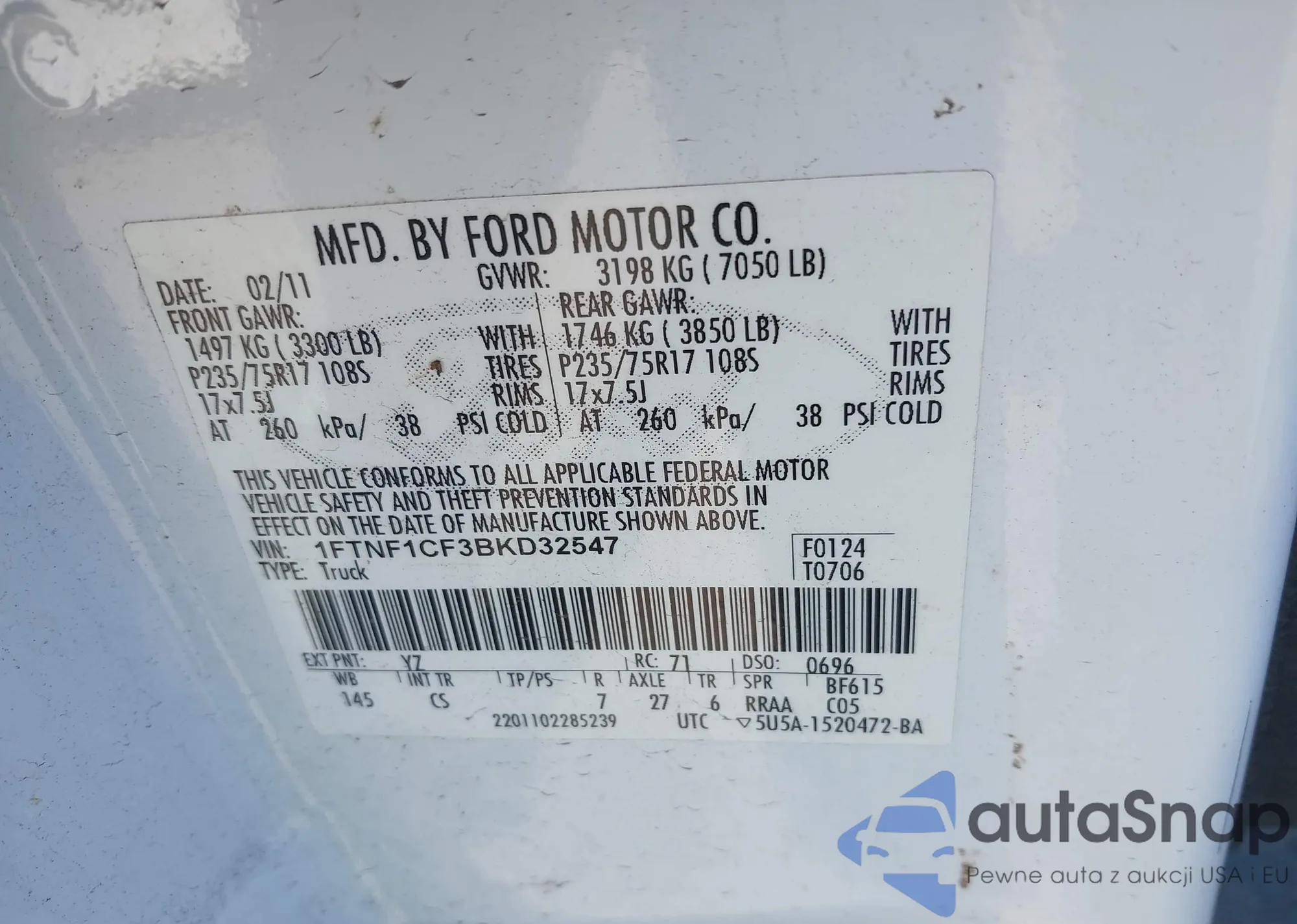 • VIN 1FTNF1CF3BKD32547