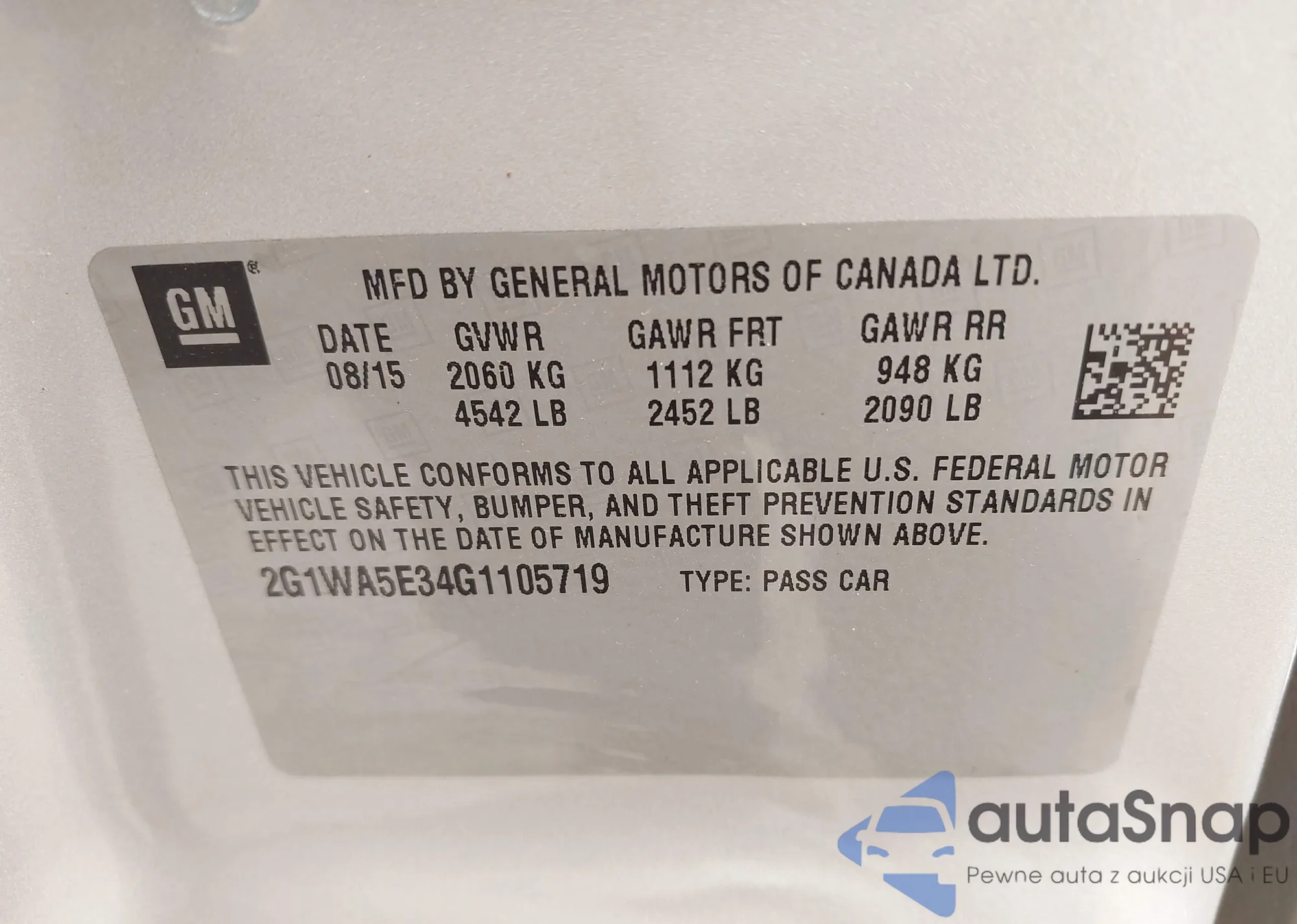 LOT: 41781957 VIN: 2G1WA5E34G1105719