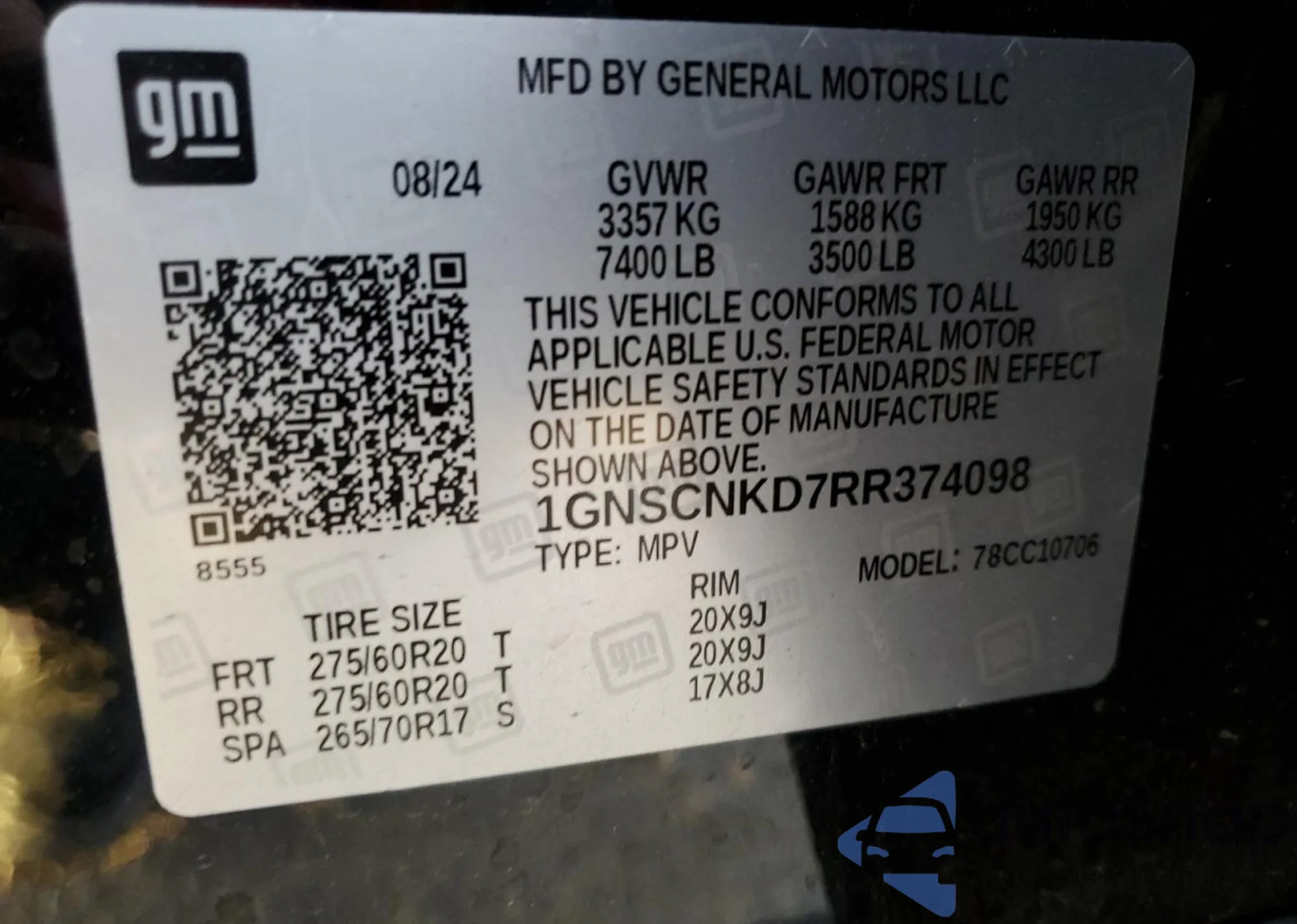 • VIN 1GNSCNKD7RR374098
