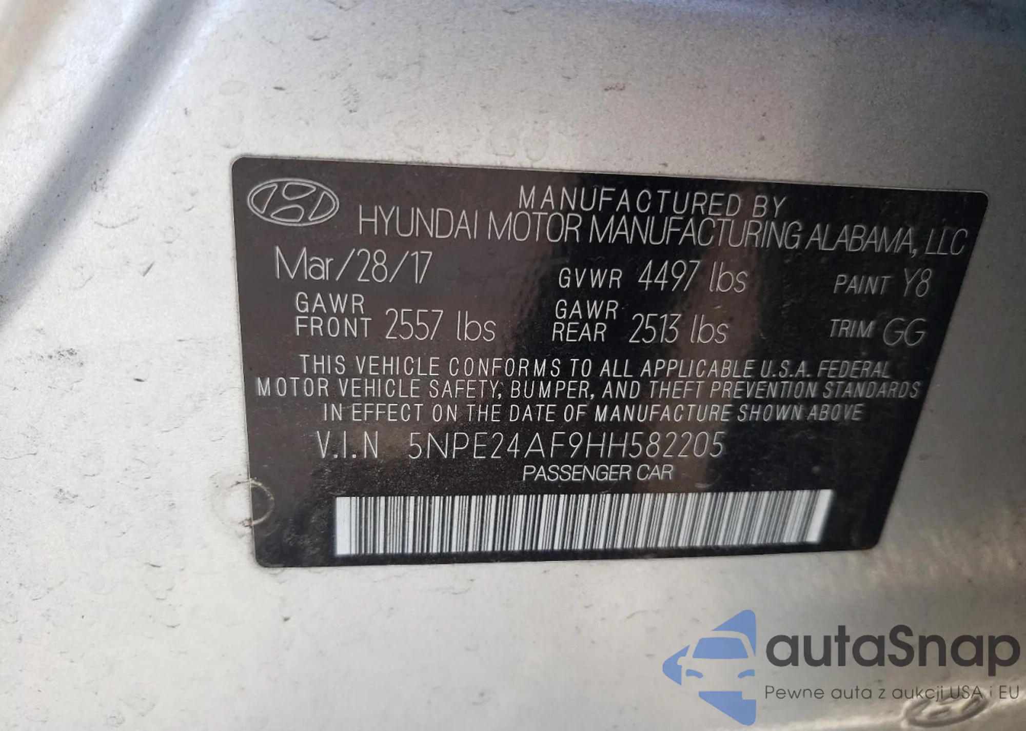 • VIN 5NPE24AF9HH582205