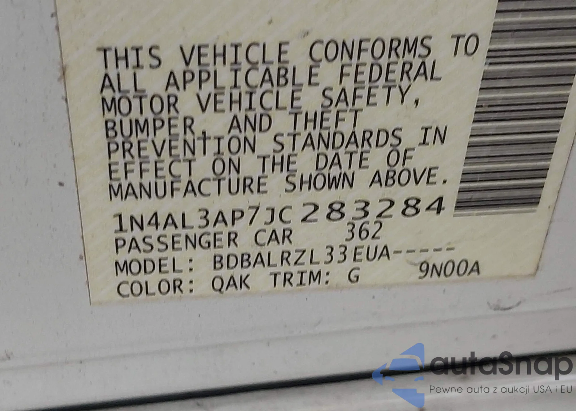 LOT: 41802125 VIN: 1N4AL3AP7JC283284