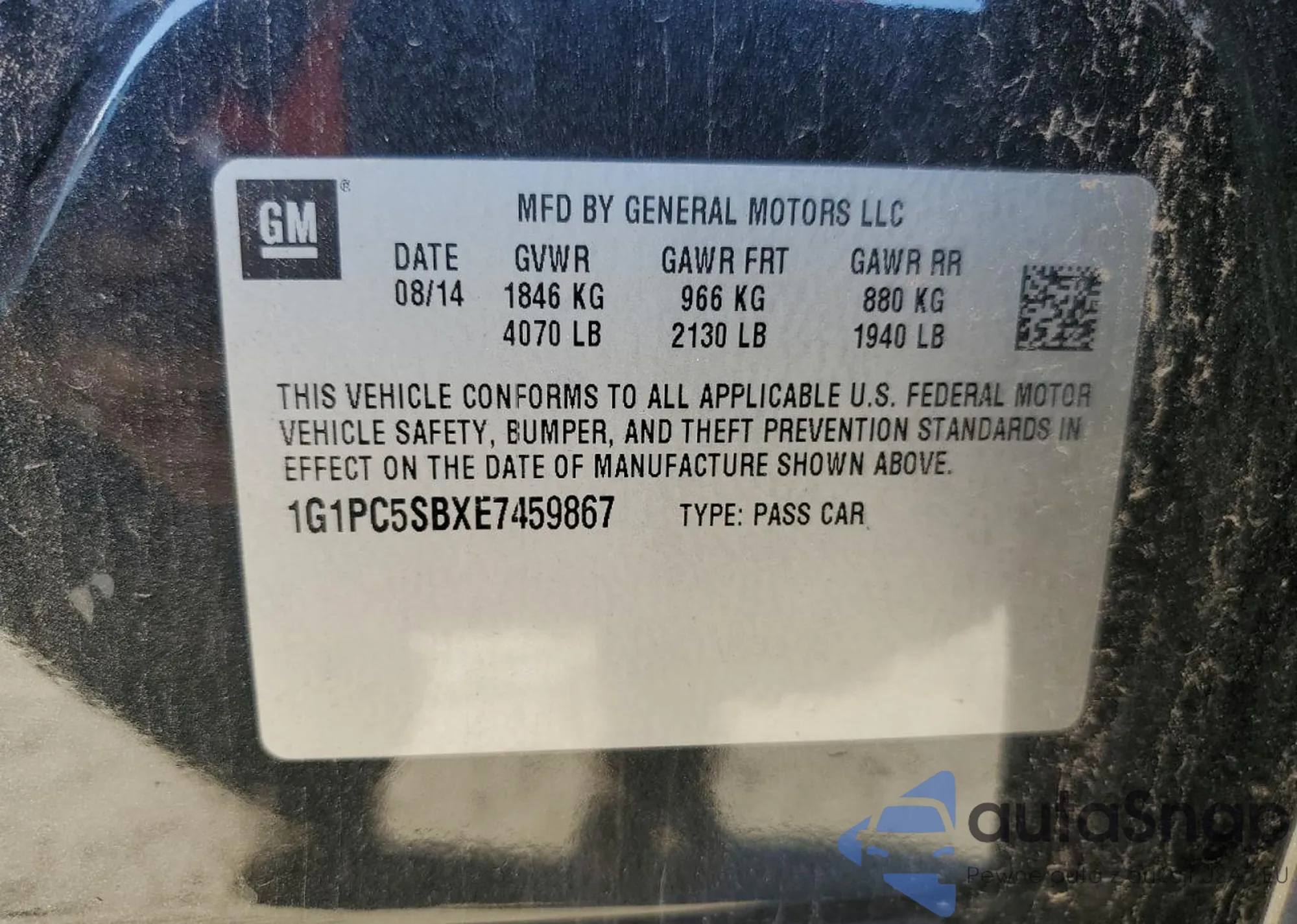 LOT: 80866564 VIN: 1G1PC5SBXE7459867