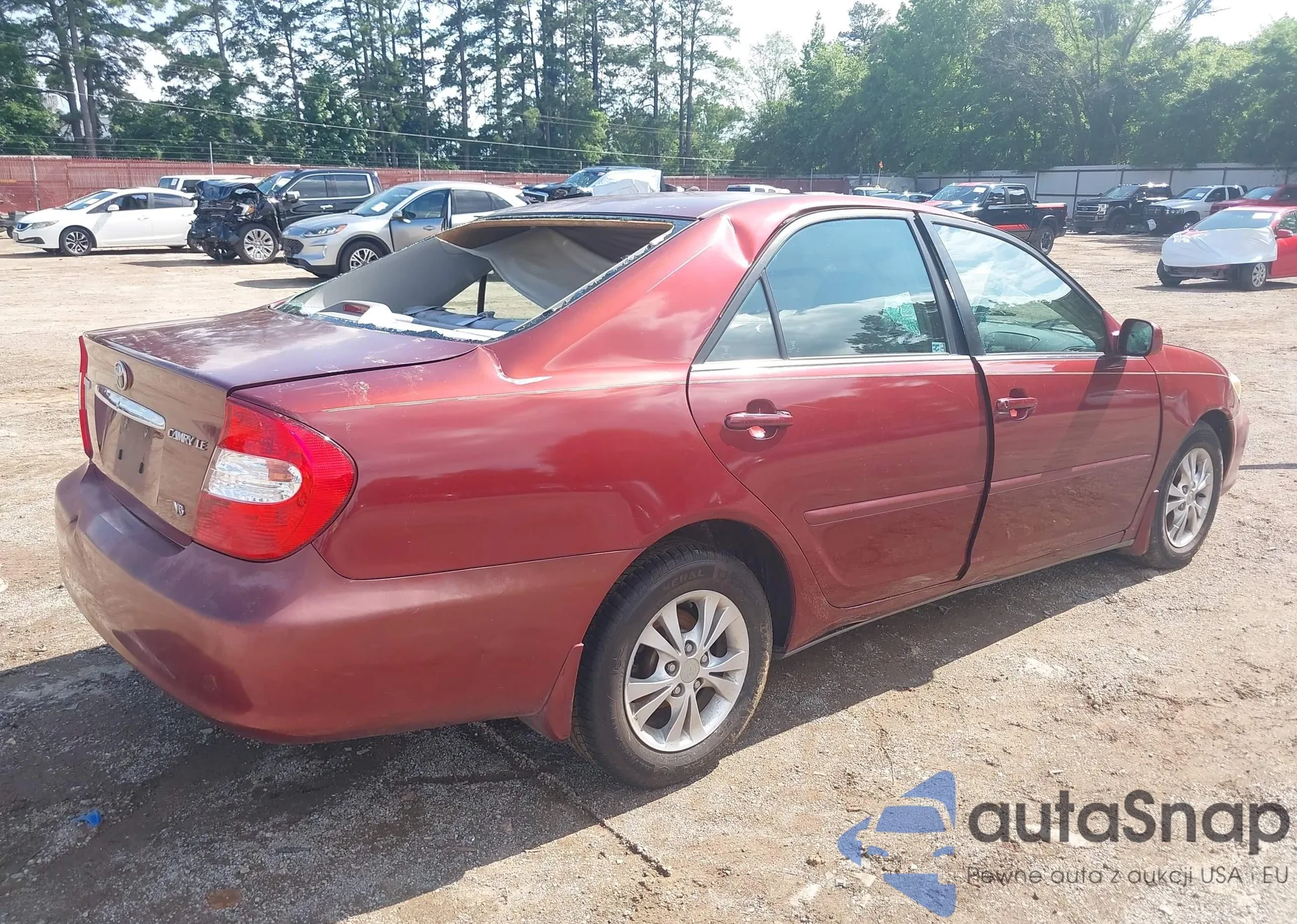 2004 Toyota Camry Le V6 z USA, uszkodzony, nr VIN 4T1BF32KX4U073166