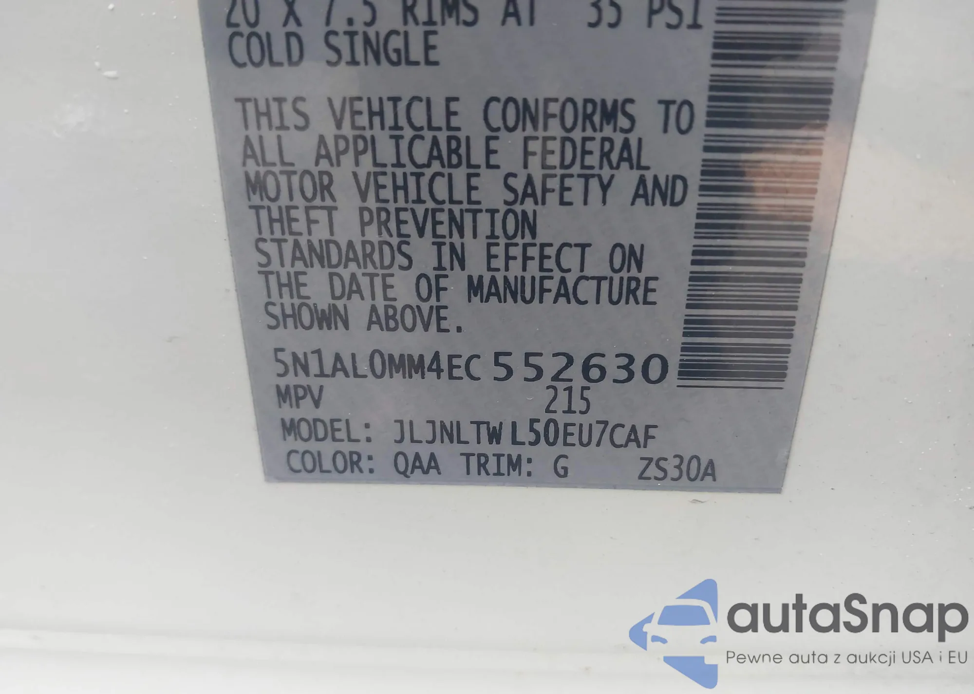 • VIN 5N1AL0MM4EC552630