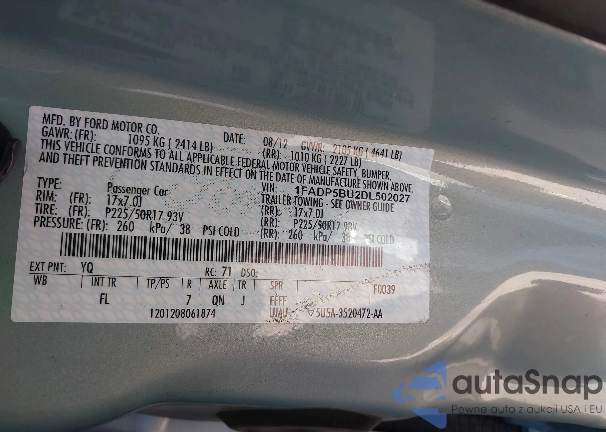 LOT: 41839015 VIN: 1FADP5BU2DL502027