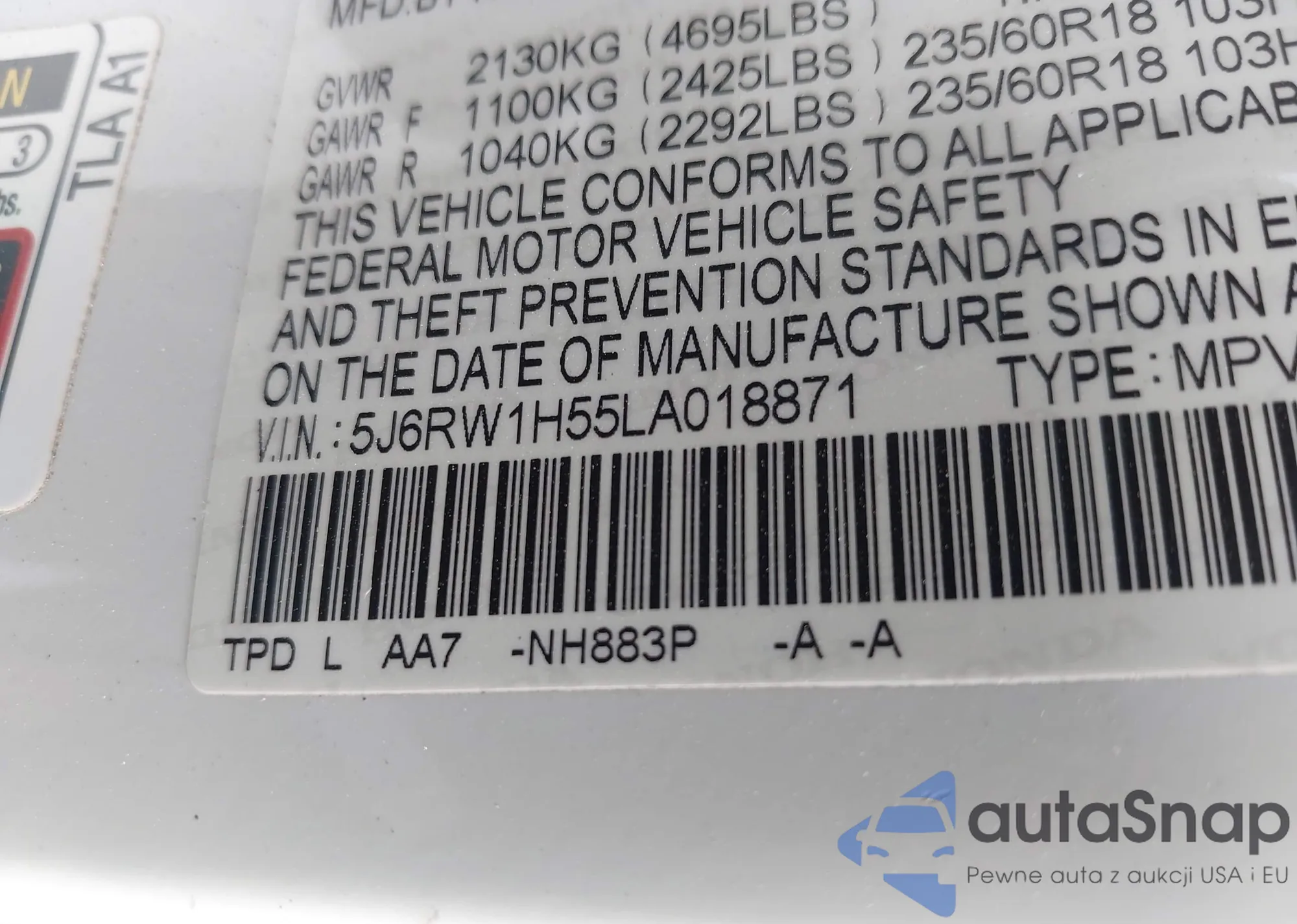 • VIN 5FNRL5H93GB054841