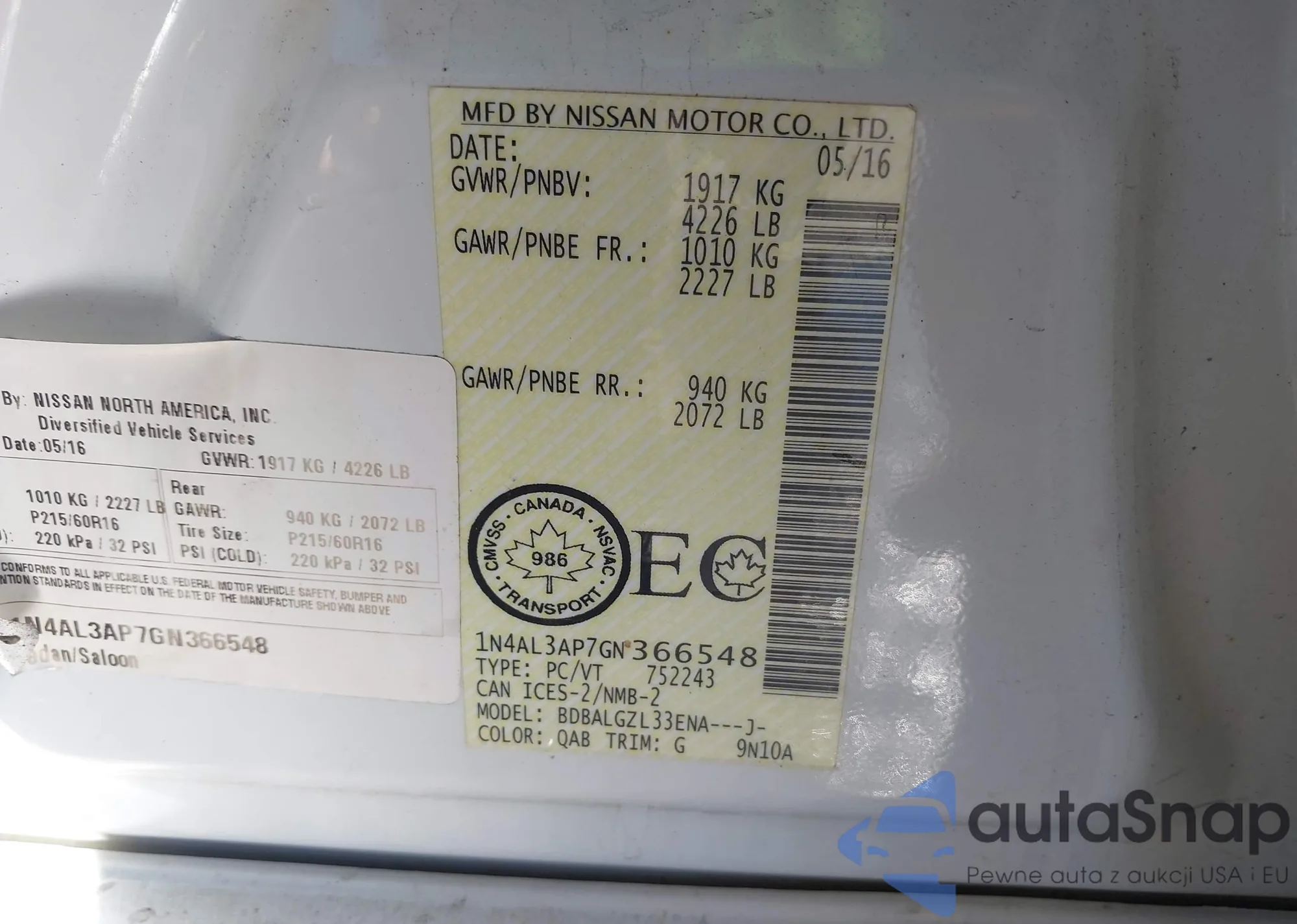 LOT: 36297435 VIN: 1N4AL2AP5CN543084
